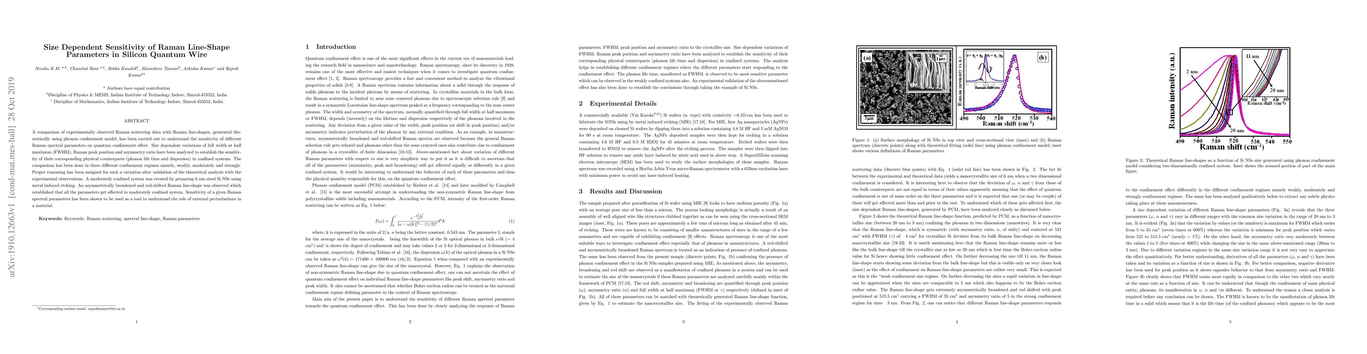 This study investigates how changes in silicon quantum wire size affect its Raman line-shape parameters, revealing that these parameters change sensitivity as the wires become more confined.