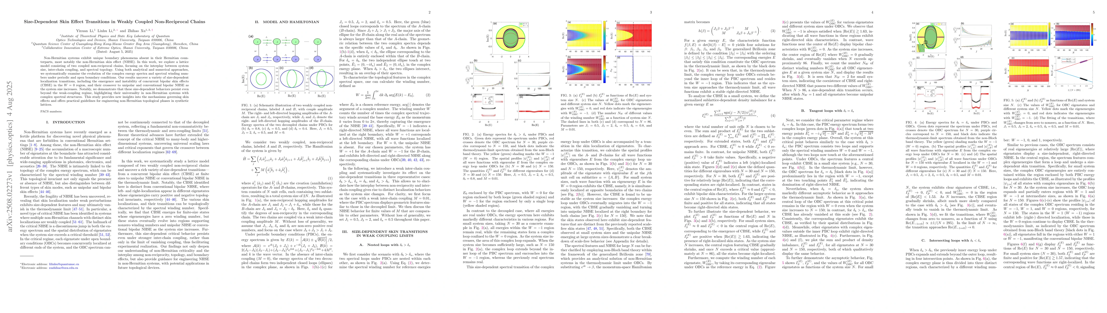 Non-Hermitian systems exhibit unique boundary phenomena absent in their Hermitian counterparts, most notably the non-Hermitian skin effect (NHSE). In this work, we explore a lattice model consisting of two coupled non-reciprocal chains, focusing on the interplay between system size, inter-chain coupling, and spectral topology. Using both analytical and numerical approaches, we systematically examine the evolution of the complex energy spectra and spectral winding numbers under periodic and open boundary conditions. Our results uncover a variety of size-dependent localization transitions, including the emergence and instability of concurrent bipolar skin effects (CBSE) in the $W=0$ region, and their crossover to unipolar and conventional bipolar NHSE as the system size increases. Notably, we demonstrate that these size-dependent behaviors persist even beyond the weak-coupling regime, highlighting their universality in non-Hermitian systems with complex spectral structures. This study provides new insights into the mechanisms governing skin effects and offers practical guidelines for engineering non-Hermitian topological phases in synthetic lattices.