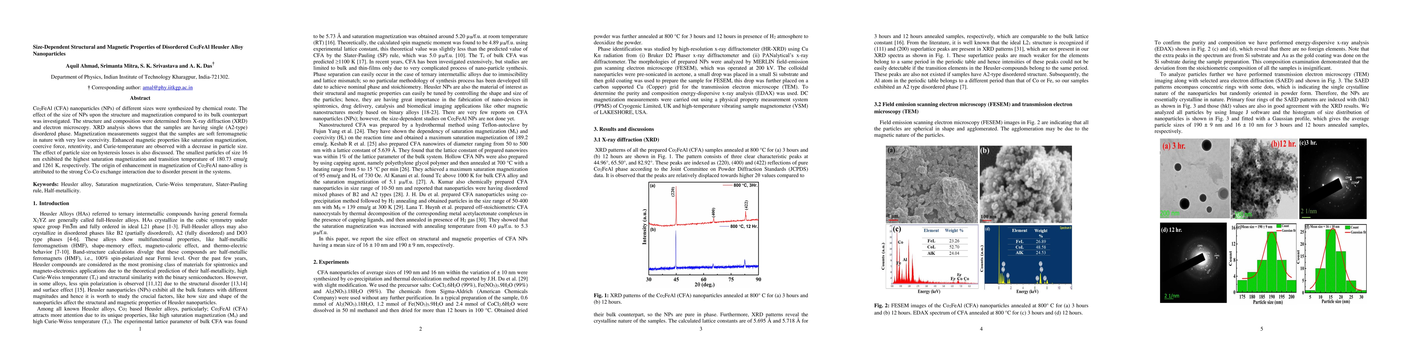 This study investigates how varying sizes of Co2FeAl Heusler alloy nanoparticles affect their structural and magnetic properties. The smallest particles (16 nm) show enhanced saturation magnetization and Curie temperature, attributed to strong Co-Co exchange interactions from structural disorder.