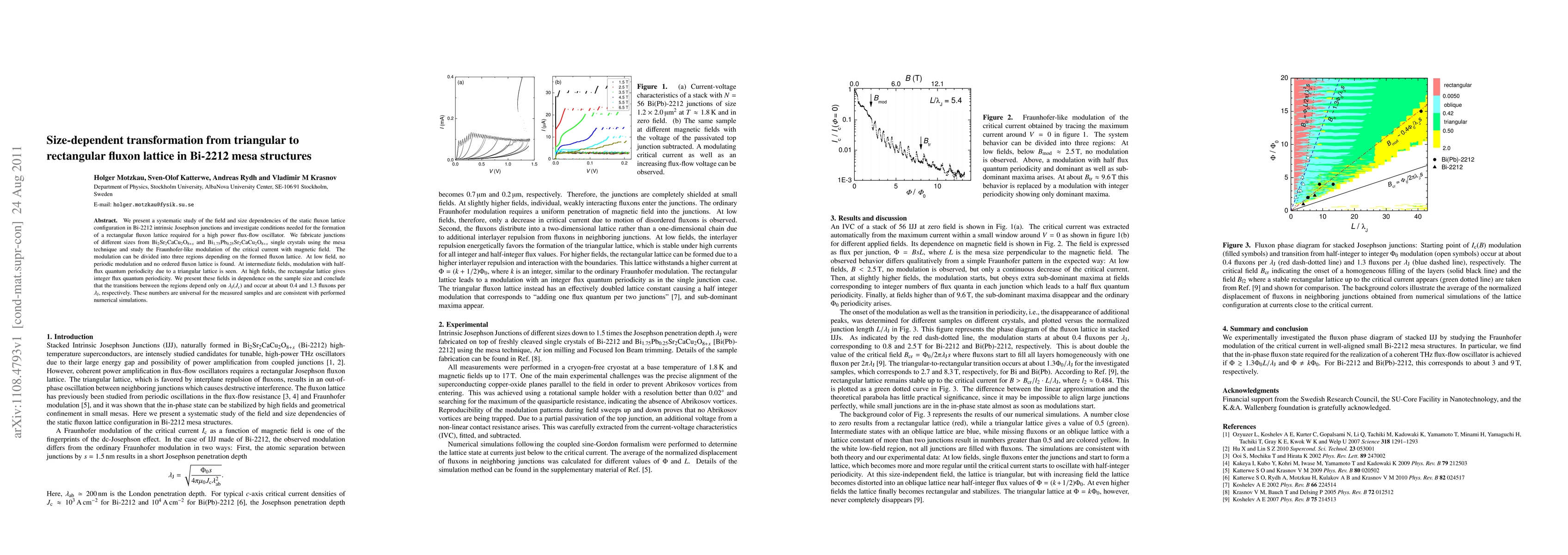 This study investigates the transformation of fluxon lattices in Bi-2212 mesa structures from triangular to rectangular configurations as a function of magnetic field and sample size. The research reveals that transitions between these lattices depend on the ratio of the magnetic penetration depth to the critical current density, occurring at specific fluxon densities.