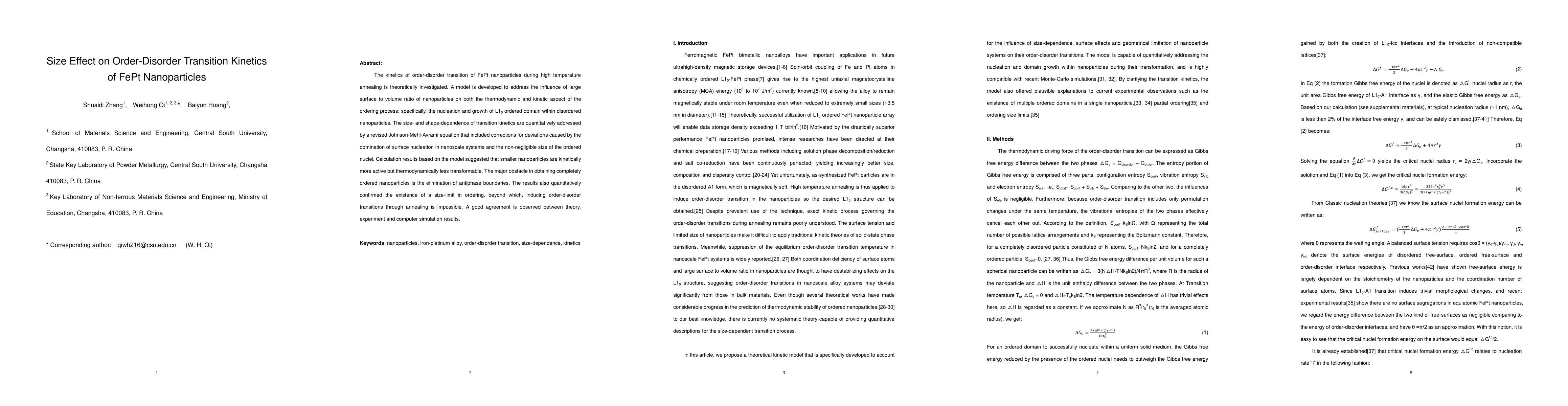 This paper investigates the kinetics of order-disorder transitions in FePt nanoparticles during high-temperature annealing, developing a model that quantifies the size effect on nucleation and growth of L10 ordered domains. Results show that smaller nanoparticles exhibit faster kinetics but face greater challenges in achieving complete order due to antiphase boundaries, confirming a size-limit for ordering.
