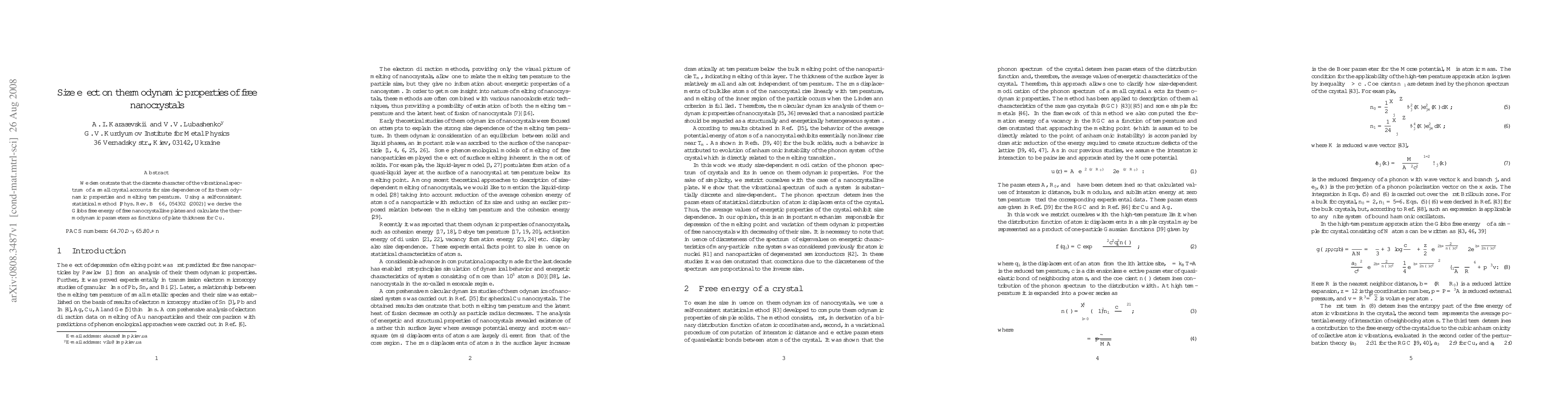 Researchers studied how the size of nanocrystals affects their thermodynamic properties, including melting temperatures, using a statistical method to calculate Gibbs free energy for small copper plates.