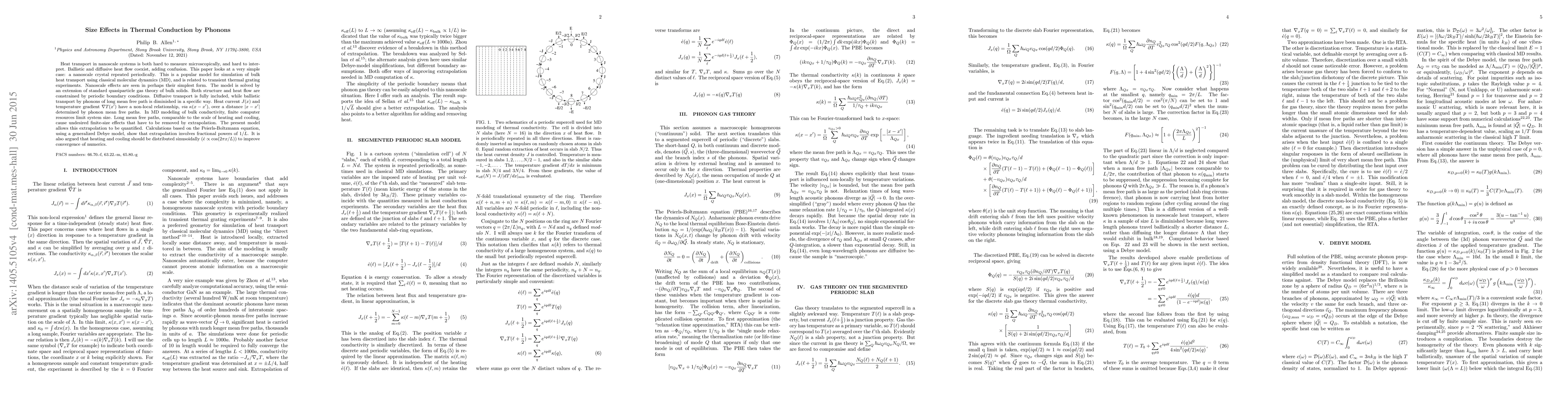 Heat transport in nanoscale systems is both hard to measure microscopically, and hard to interpret. Ballistic and diffusive heat flow coexist, adding confusion. This paper looks at a very simple case: a nanoscale crystal repeated periodically. This is a popular model for simulation of bulk heat transport using classical molecular dynamics (MD), and is related to transient thermal grating experiments. Nanoscale effects are seen in perhaps their simplest form. The model is solved by an extension of standard quasiparticle gas theory of bulk solids. Both structure and heat flow are constrained by periodic boundary conditions. Diffusive transport is fully included, while ballistic transport by phonons of long mean free path is diminished in a specific way. Heat current J(x) and temperature gradient dT(x')/dx' have a non-local relationship, via k(x-x'), over a distance |x-x'| determined by phonon mean free paths. In MD modeling of bulk conductivity, finite computer resources limit system size. Long mean free paths, comparable to the scale of heating and cooling, cause undesired finite-size effects that have to be removed by extrapolation. The present model allows this extrapolation to be quantified. Calculations based on the Peierls-Boltzmann equation, using a generalized Debye model, show that extrapolation involves fractional powers of 1/L. It is also argued that heating and cooling should be distributed sinusoidally (de/dt~cos(2pi x/L)) to improve convergence of numerics.