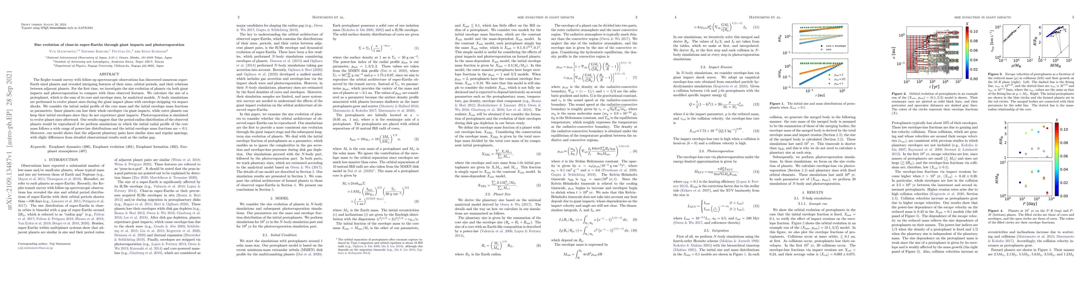 The Kepler transit survey with follow-up spectroscopic observations has discovered numerous super-Earth sized planets and revealed intriguing features of their sizes, orbital periods, and their relations between adjacent planets. For the first time, we investigate the size evolution of planets via both giant impacts and photoevaporation to compare with these observed features. We calculate the size of a protoplanet, which is the sum of its core and envelope sizes, by analytical models. $N$-body simulations are performed to evolve planet sizes during the giant impact phase with envelope stripping via impact shocks. We consider the initial radial profile of the core mass and the initial envelope mass fractions as parameters. Inner planets can lose their whole envelopes via giant impacts, while outer planets can keep their initial envelopes since they do not experience giant impacts. Photoevaporation is simulated to evolve planet sizes afterward. Our results suggest that the period-radius distribution of the observed planets would be reproduced if we perform simulations in which the initial radial profile of the core mass follows a wide range of power-law distributions and the initial envelope mass fractions are $\sim0.1$. Moreover, our model shows that the adjacent planetary pairs have similar sizes and regular spacings, with slight differences from detailed observational results such as the radius gap.