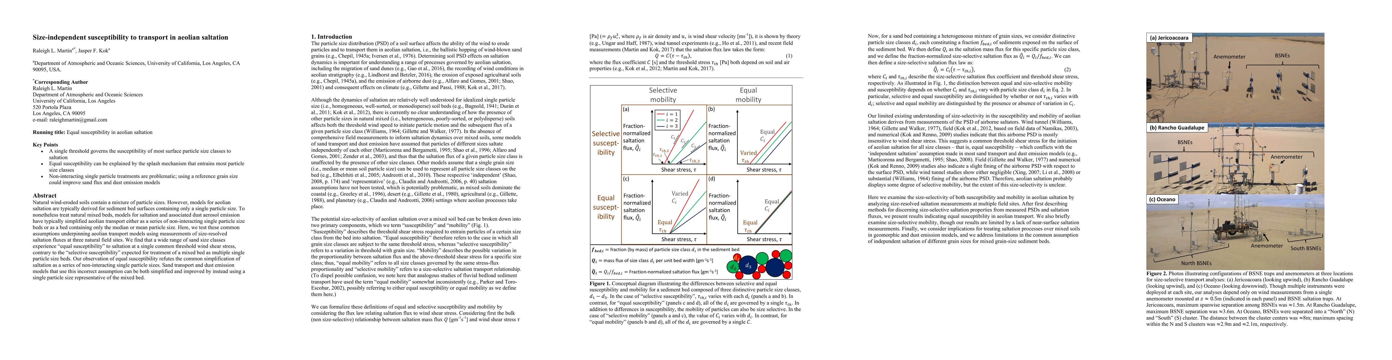 This study challenges the common assumption that different particle sizes in wind-eroded soils have selective susceptibility to saltation, finding instead that a range of sizes exhibit equal susceptibility at a single wind shear stress threshold. This discovery suggests that mixed-size sand transport models can be simplified and improved by using a single representative particle size.