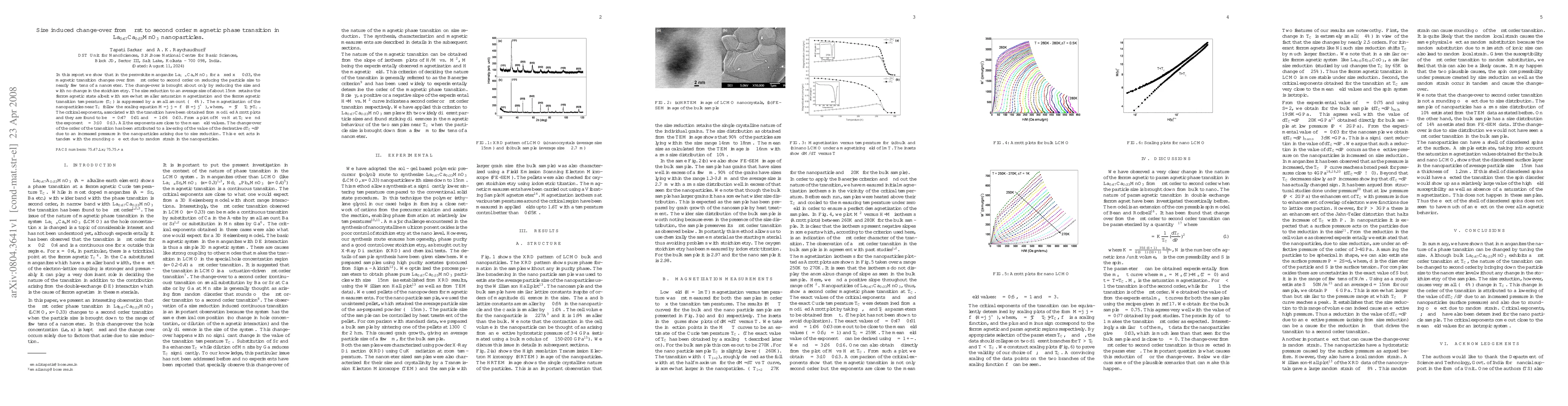 In this report we show that in the perovskite manganite La_{1-x}Ca_{x}MnO_3 for a fixed x \approx 0.33, the magnetic transition changes over from first order to second order on reducing the particle size to nearly few tens of a nanometer. The change-over is brought about only by reducing the size and with no change in the stoichiometry. The size reduction to an average size of about 15 nm retains the ferromagnetic state albeit with somewhat smaller saturation magnetization and the ferromagnetic transition temperature T_{C} is suppressed by a small amount (4%). The magnetization of the nanoparticles near T_{C} follow the scaling equation $M/|\epsilon|^\beta = f_\pm(H/|\epsilon|^{\gamma+\beta})$, where, $\epsilon = |T-T_C|/T_C$. The critical exponents, associated with the transition have been obtained from modified Arrott plots and they are found to be $\beta=0.47\pm 0.01$ and $\gamma=1.06\pm 0.03$. From a plot of M vs H at T_{C} we find the exponent $\delta=3.10 \pm 0.13$. All the exponents are close to the mean field values. The change-over of the order of the transition has been attributed to a lowering of the value of the derivative dT_{C}/dP due to an increased pressure in the nanoparticles arising due to size reduction. This effect acts in tandem with the rounding off effect due to random strain in the nanoparticles.