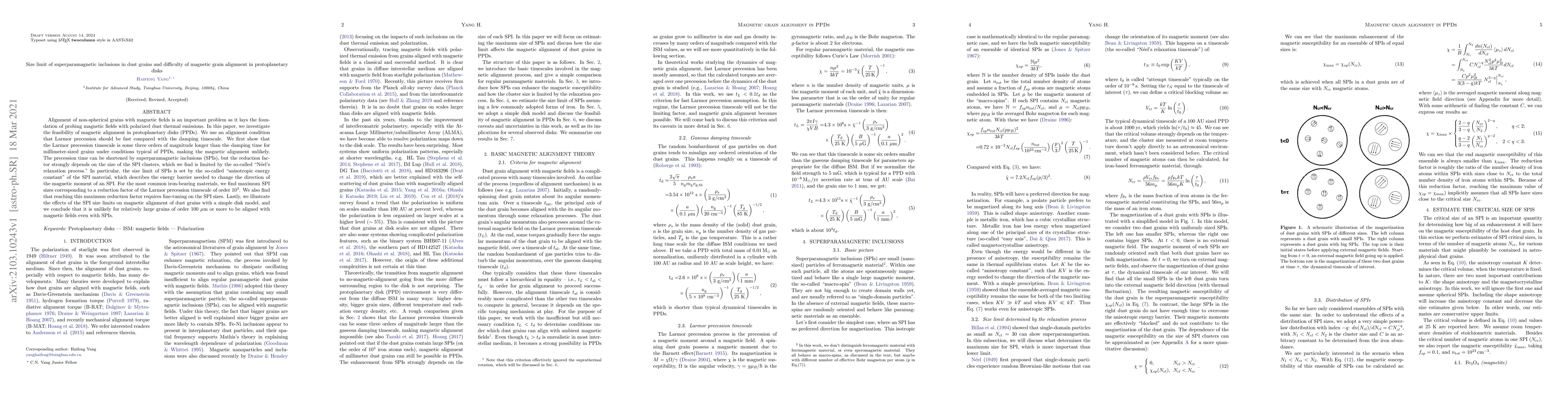 Magnetic alignment of dust grains in protoplanetary disks is unlikely due to grain size limits, but superparamagnetic inclusions can reduce this limit; however, the reduction factor depends on SPI cluster sizes.