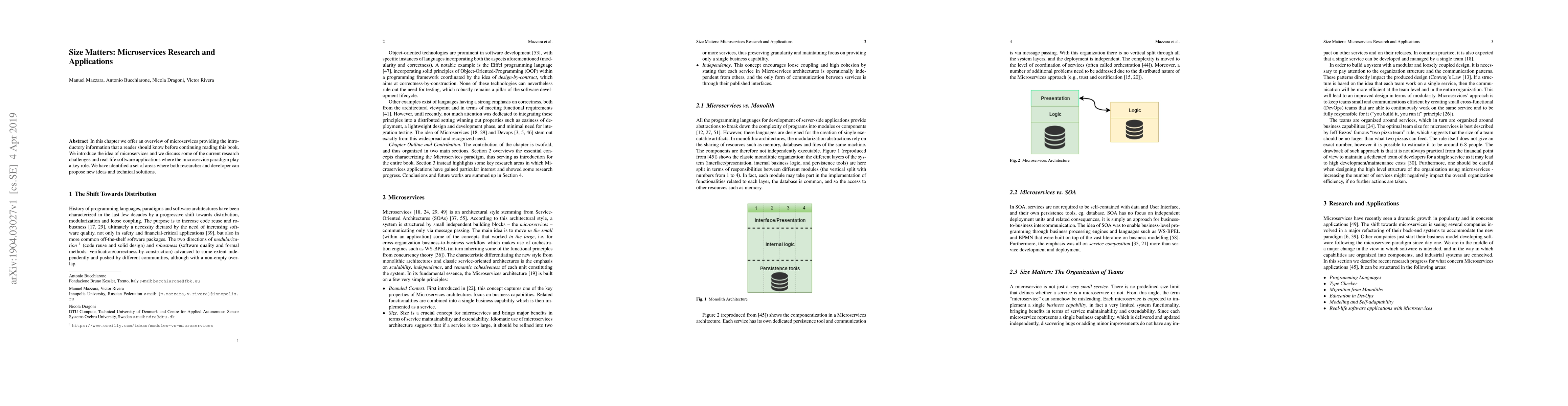 This paper provides an introductory overview of microservices, highlighting current research challenges and real-life applications. It identifies key areas for future research and development in the microservice paradigm.