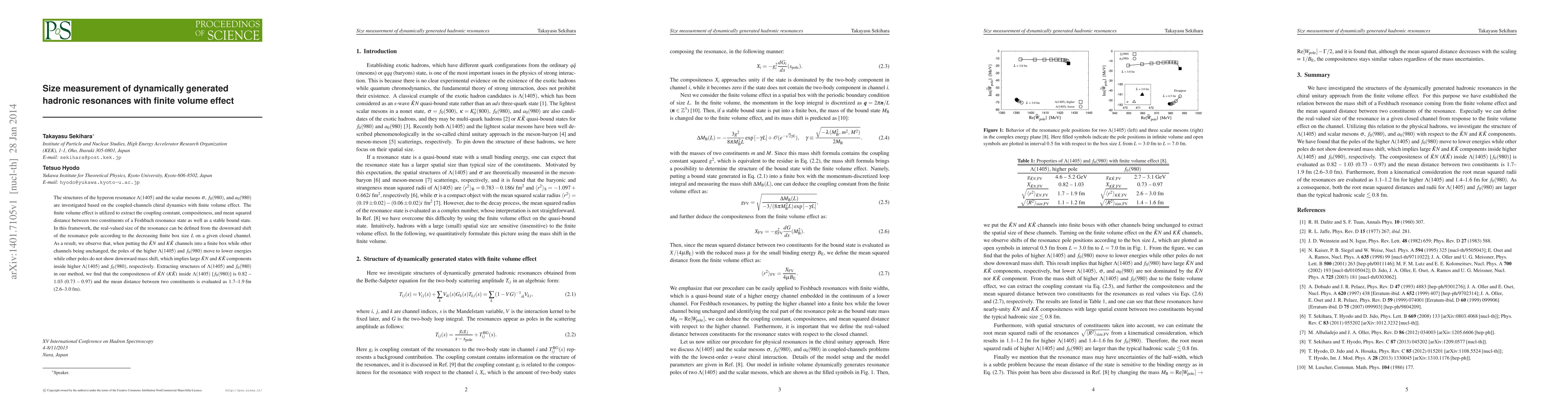 Researchers used a new method to study the size of hadronic resonances, finding that some have large components made of smaller particles and others may not shrink in size as predicted.