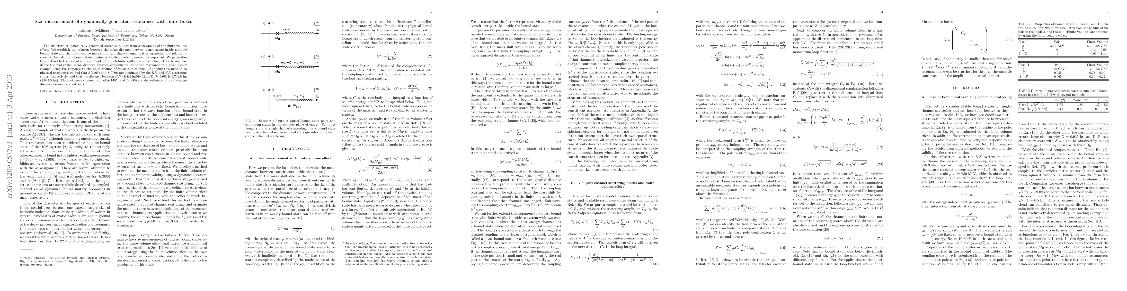 The structure of dynamically generated states is studied from a viewpoint of the finite volume effect. We establish the relation between the spatial size of a stable bound state and the finite volume mass shift. In a single-channel scattering model, this relation is shown to be valid for a bound state dominated by the two-body molecule component. We generalize this method to the case of a quasi-bound state with finite width in coupled-channel scattering. We define the real-valued size of the resonance in a given closed channel using the response to the finite volume effect on the channel. Applying this method to physical resonances we find that Lambda(1405) and f_{0}(980) are dominated by the Kbar N and K Kbar scattering states, respectively, and that the distance between Kbar N (K Kbar) inside Lambda(1405) [f_{0}(980)] is 1.7-1.9 fm (2.6-3.0 fm). The root mean squared radii of Lambda(1405) and f_0(980) are also estimated from the mean distance between constituents.