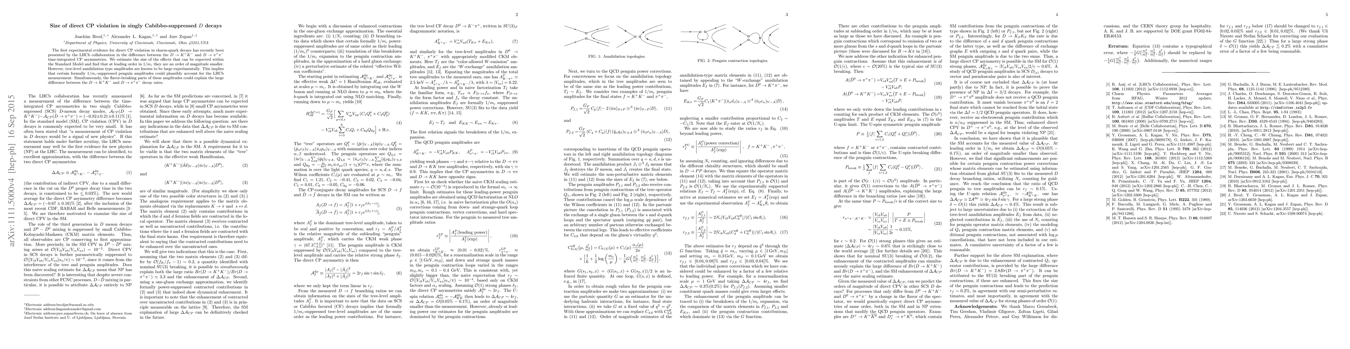 The first experimental evidence for direct CP violation in charm-quark decays has recently been presented by the LHCb collaboration in the difference between the D -> K+ K- and D -> pi+ pi- time-integrated CP asymmetries. We estimate the size of the effects that can be expected within the Standard Model and find that at leading order in 1/mc they are an order of magnitude smaller. However, tree-level annihilation type amplitudes are known to be large experimentally. This implies that certain formally 1/mc-suppressed penguin amplitudes could plausibly account for the LHCb measurement. Simultaneously, the flavor-breaking parts of these amplitudes could explain the large difference between the D -> K+ K- and D -> pi+ pi- decay rates.