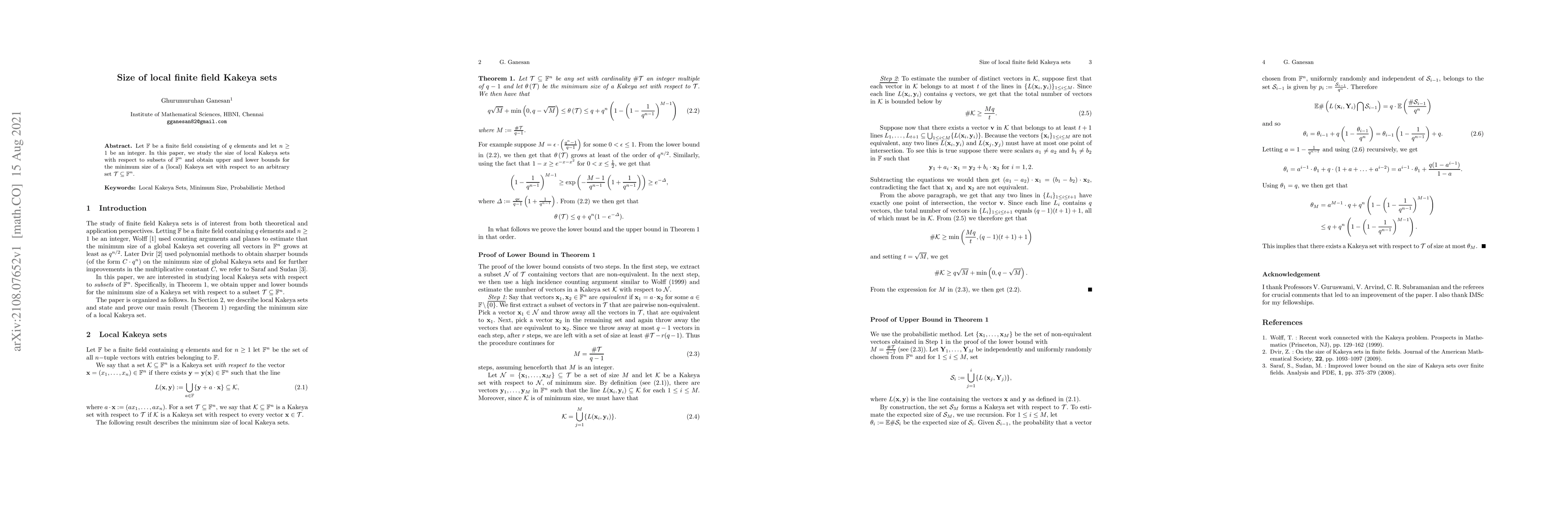 This paper investigates the size of local Kakeya sets in finite fields $\mathbb{F}^{n}$, providing both upper and lower bounds for the minimum size of such sets relative to arbitrary subsets $\mathcal{T} \subseteq \mathbb{F}^{n}$.