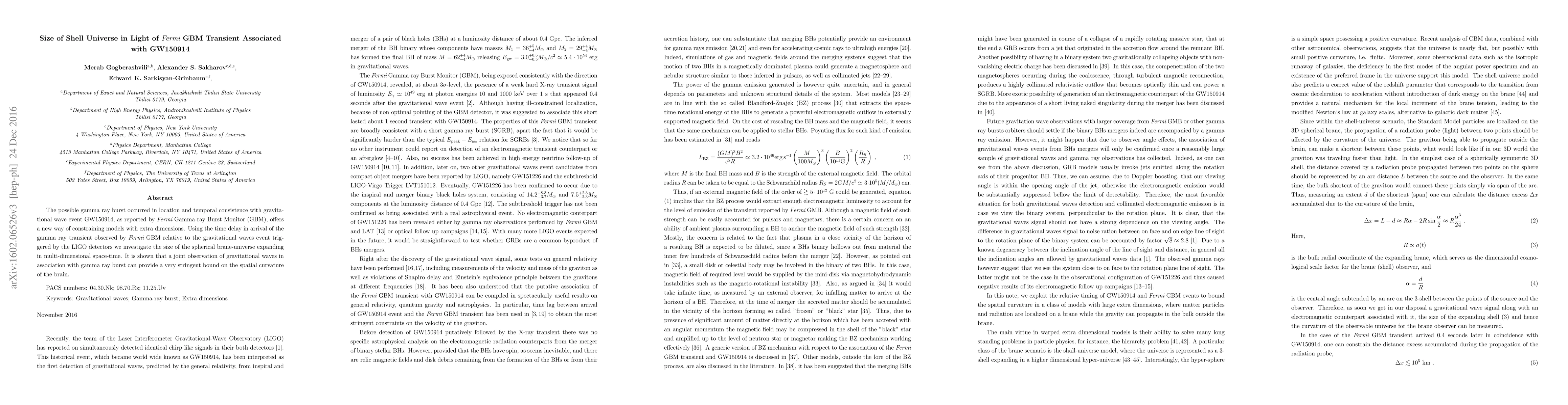 This paper investigates the size of a spherical brane-universe using a gamma ray burst transient observed by Fermi GBM that coincided with the gravitational wave event GW150914. The study finds that such joint observations can provide stringent constraints on the spatial curvature of the brane.