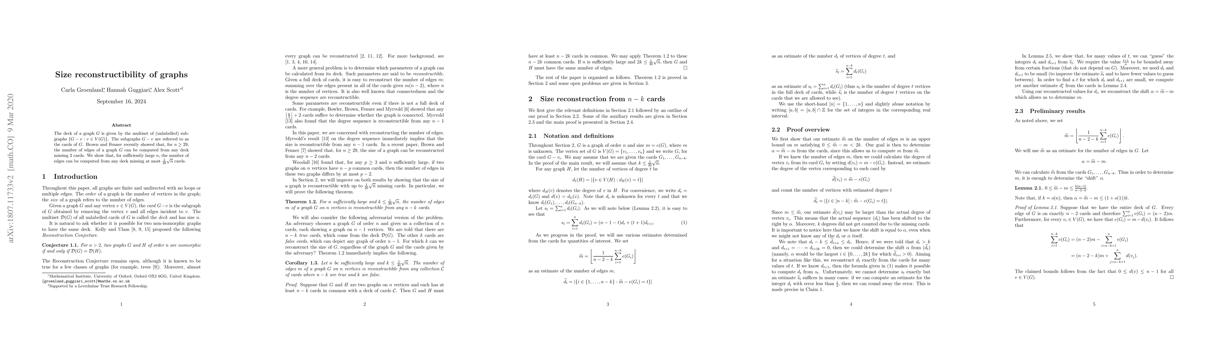 The deck of a graph $G$ is given by the multiset of (unlabelled) subgraphs $\{G-v:v\in V(G)\}$. The subgraphs $G-v$ are referred to as the cards of $G$. Brown and Fenner recently showed that, for $n\geq29$, the number of edges of a graph $G$ can be computed from any deck missing 2 cards. We show that, for sufficiently large $n$, the number of edges can be computed from any deck missing at most $\frac1{20}\sqrt{n}$ cards.