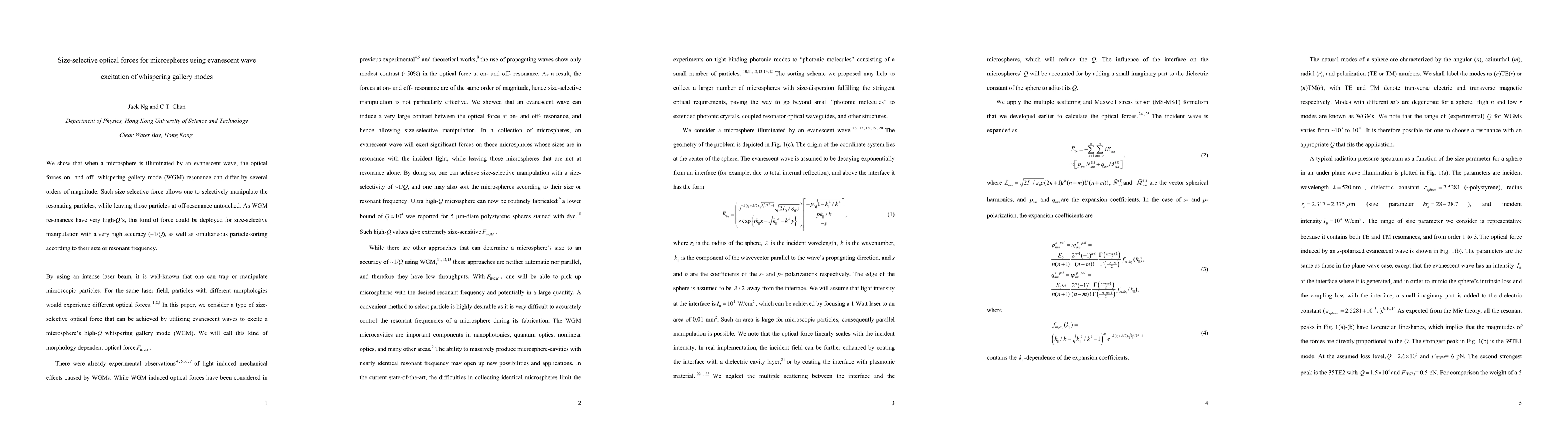 We show that when a microsphere is illuminated by an evanescent wave, the optical forces on- and off- whispering gallery mode (WGM) resonance can differ by several orders of magnitude. Such size selective force allows one to selectively manipulate the resonating particles, while leaving those particles at off-resonance untouched. As WGM resonances have very high-Q's, this kind of force could be deployed for size-selective manipulation with a very high accuracy (~1/Q), as well as simultaneous particle-sorting according to their size or resonant frequency.