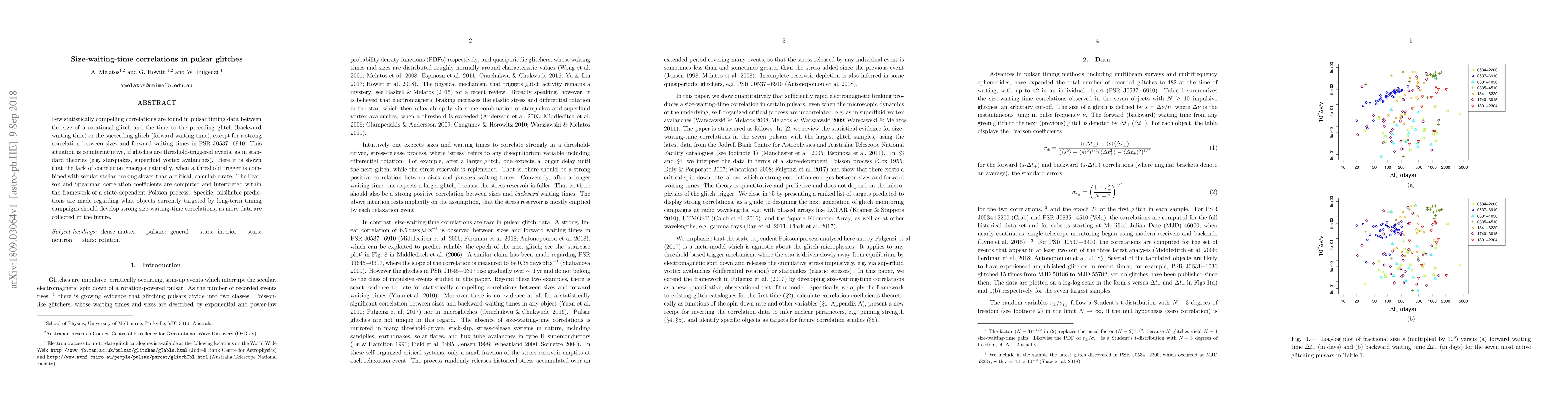 A pulsar glitch study finds a strong correlation between glitch size and forward waiting time in one specific pulsar, but no correlation is expected due to stellar braking. The paper proposes that a threshold trigger combined with secular braking can explain this lack of correlation.