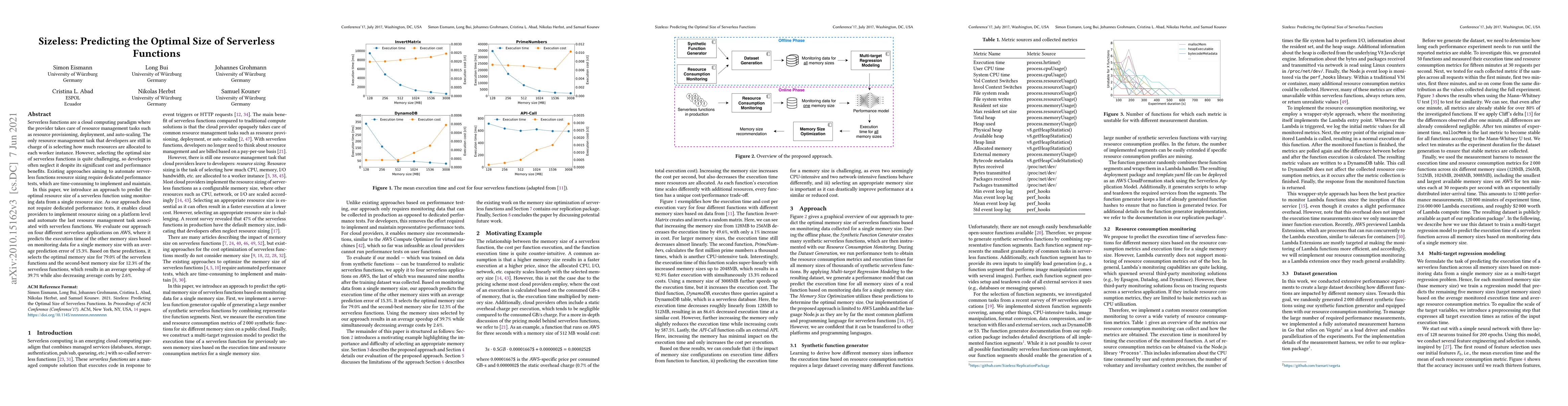 This paper proposes an automated method to predict the optimal size of serverless functions using monitoring data, eliminating the need for time-consuming performance tests. The approach achieves an average 43.6% speedup and a 10.2% cost reduction across three serverless applications.