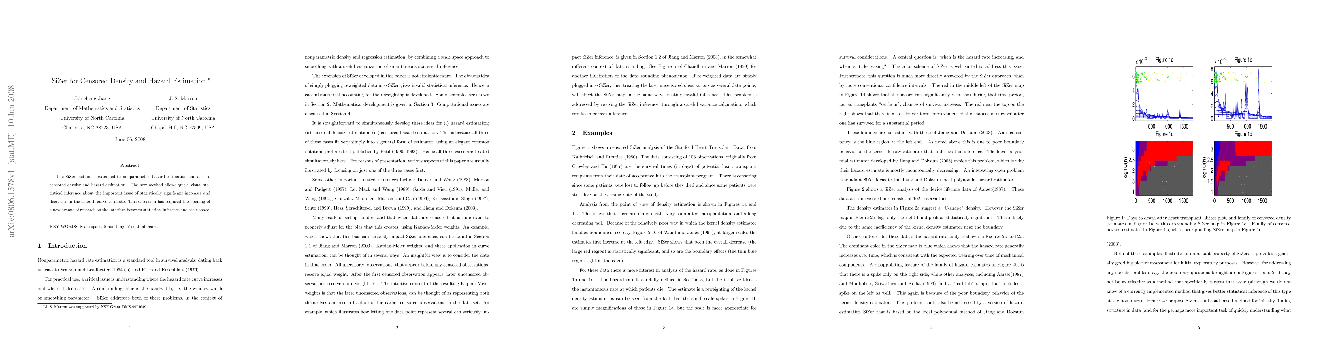 The SiZer method is extended to censored density and hazard estimation, enabling visual statistical inference on significant changes in the smooth curve. This extension opens new research avenues at the intersection of statistical inference and scale space.