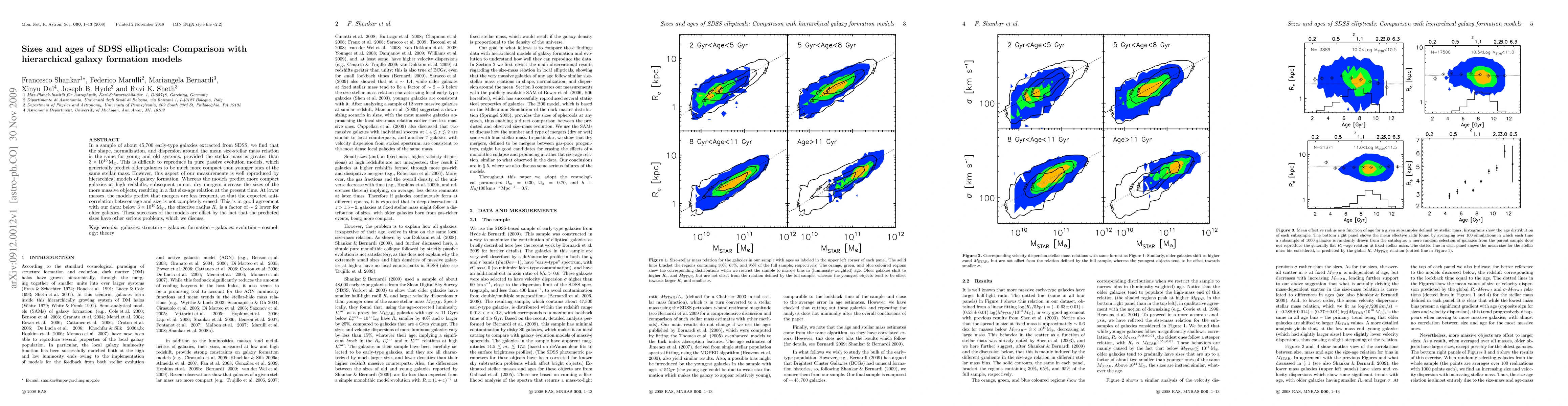 This study compares the sizes and ages of 45,700 SDSS elliptical galaxies, finding that larger galaxies (>3*10^10 Msun) show similar size-stellar mass relations regardless of age. Hierarchical galaxy formation models successfully reproduce these observations, attributing larger sizes to minor mergers, while smaller galaxies (<3*10^10 Msun) retain an age-size anti-correlation.