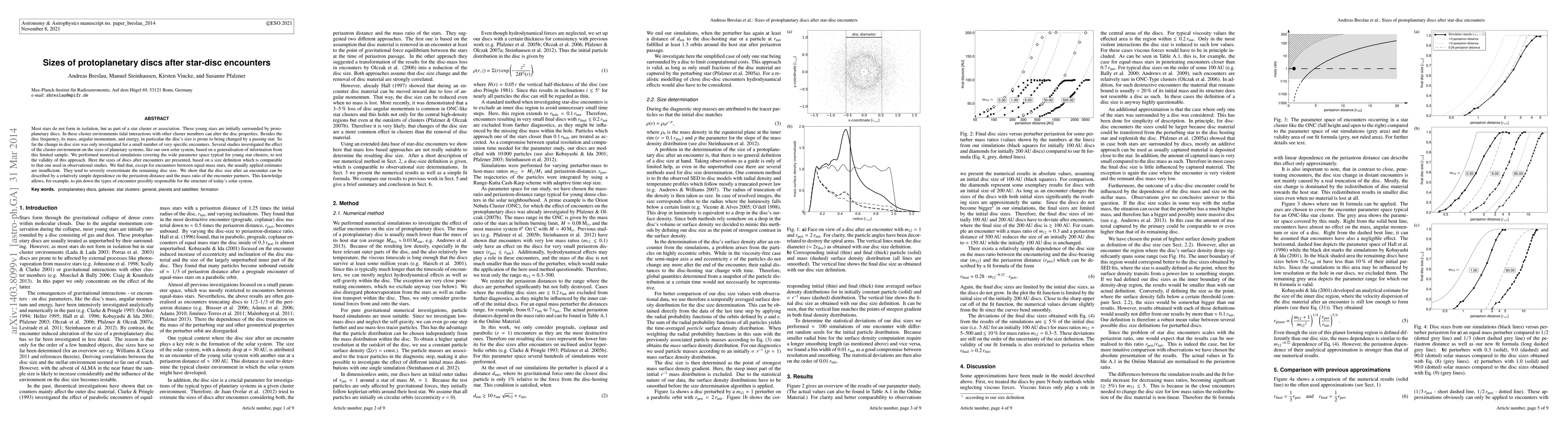 This paper investigates how star-disc encounters in star clusters affect the sizes of protoplanetary discs, finding that existing estimates often overestimate remaining disc sizes. It proposes a simpler model based on the periastron distance and mass ratio of the stars involved, which can better predict disc sizes post-encounter.