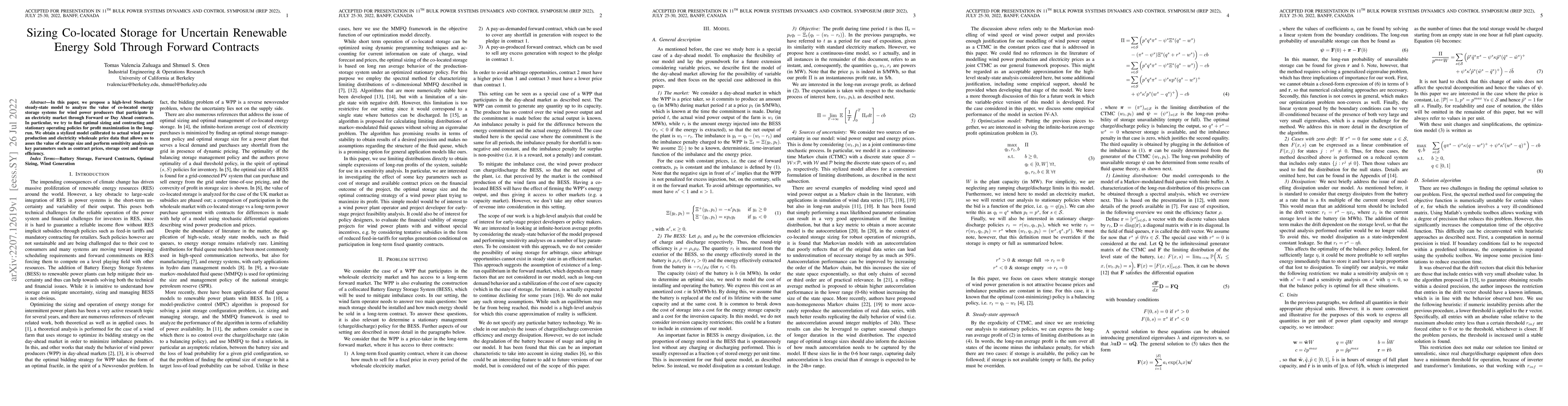 This paper develops a stochastic model to optimize the sizing and operation of co-located storage for wind power producers selling energy via forward contracts, aiming to maximize long-term profits. It evaluates the impact of storage size and key parameters on profitability through a calibrated model based on real wind power and electricity price data.