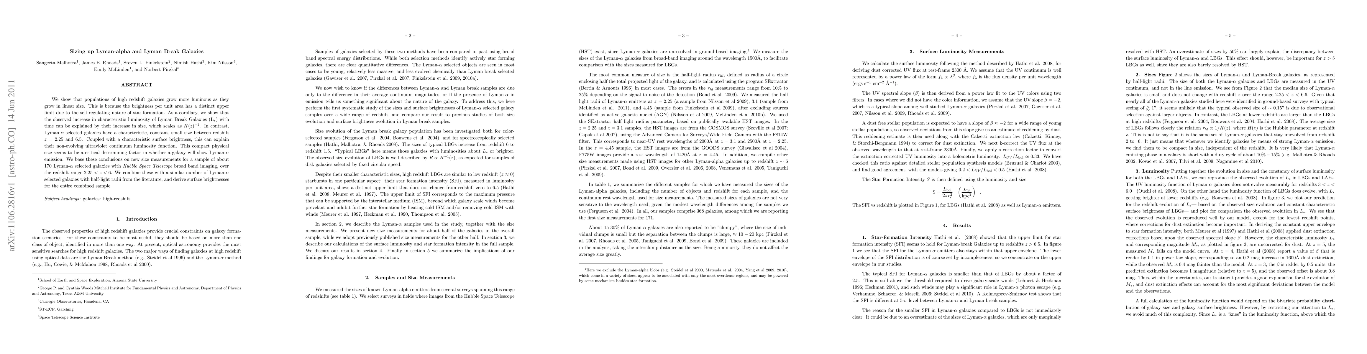 This paper finds that high redshift galaxies, particularly Lyman Break Galaxies, become more luminous as they grow in size due to a self-regulating star-formation limit. In contrast, Lyman-alpha selected galaxies maintain a constant small size and surface brightness, explaining their stable ultraviolet luminosity function, which is crucial for their Lyman-alpha emission.