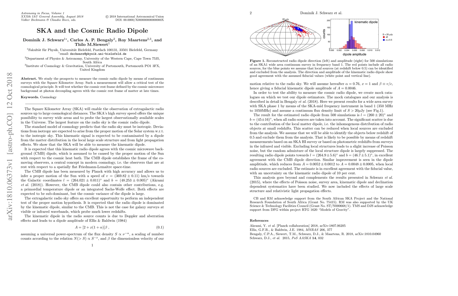 Summary: This paper explores the potential of the Square Kilometre Array (SKA) to measure the cosmic radio dipole through continuum surveys, aiming to test the cosmological principle by comparing the cosmic rest frame of the cosmic microwave background with that of matter at late times.
