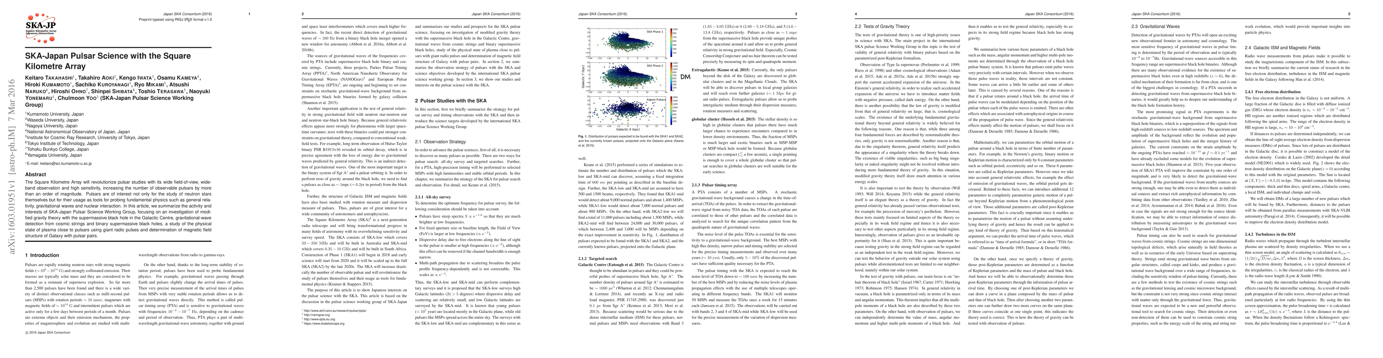 The Square Kilometre Array will vastly enhance pulsar research by significantly increasing the number of observable pulsars. SKA-Japan aims to explore modified gravity, gravitational waves, and the magnetic field structure of the Galaxy using advanced pulsar observations.