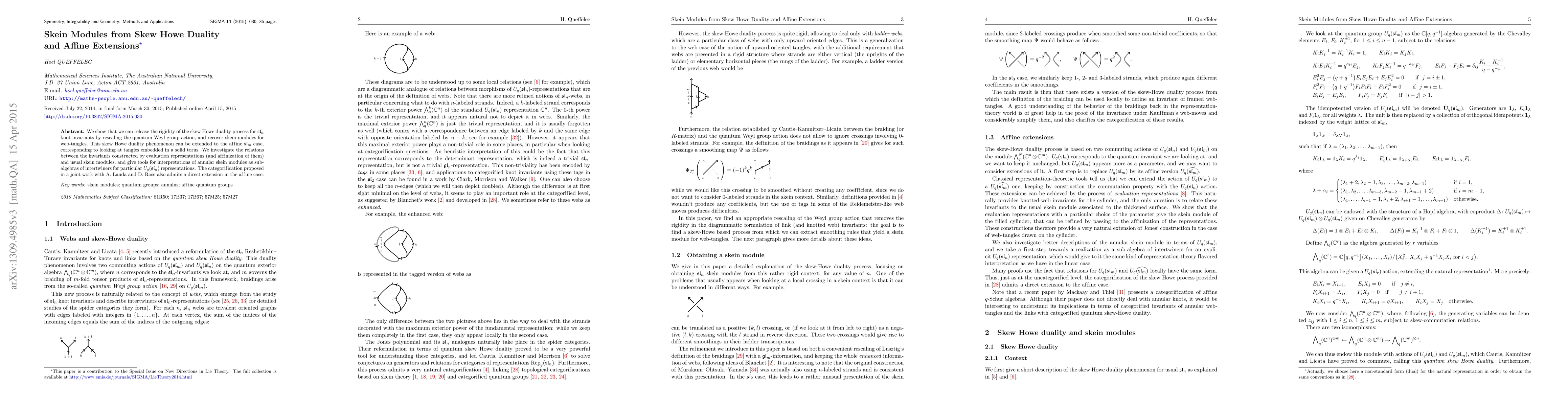We show that we can release the rigidity of the skew Howe duality process for ${\mathfrak sl}_n$ knot invariants by rescaling the quantum Weyl group action, and recover skein modules for web-tangles. This skew Howe duality phenomenon can be extended to the affine ${\mathfrak sl}_m$ case, corresponding to looking at tangles embedded in a solid torus. We investigate the relations between the invariants constructed by evaluation representations (and affinization of them) and usual skein modules, and give tools for interpretations of annular skein modules as sub-algebras of intertwiners for particular $U_q({\mathfrak sl}_n)$ representations. The categorification proposed in a joint work with A. Lauda and D. Rose also admits a direct extension in the affine case.