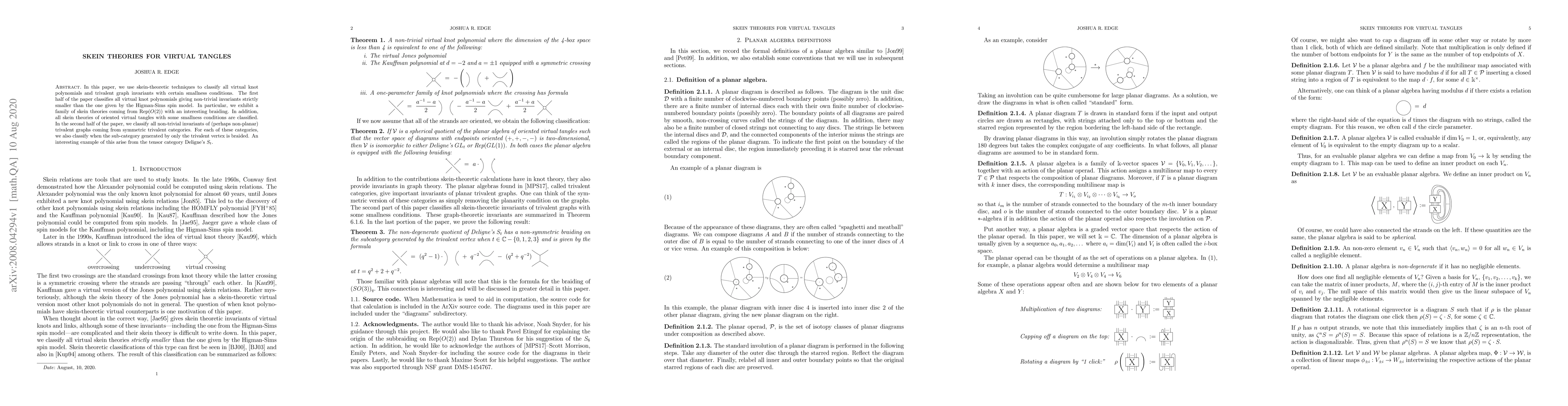 This paper classifies all virtual knot polynomials and trivalent graph invariants using skein-theoretic techniques, particularly focusing on those with smallness conditions. It introduces a family of skein theories from $\text{Rep}(O(2))$ and discusses braiding in symmetric trivalent categories, including an example from Deligne's $S_t$.