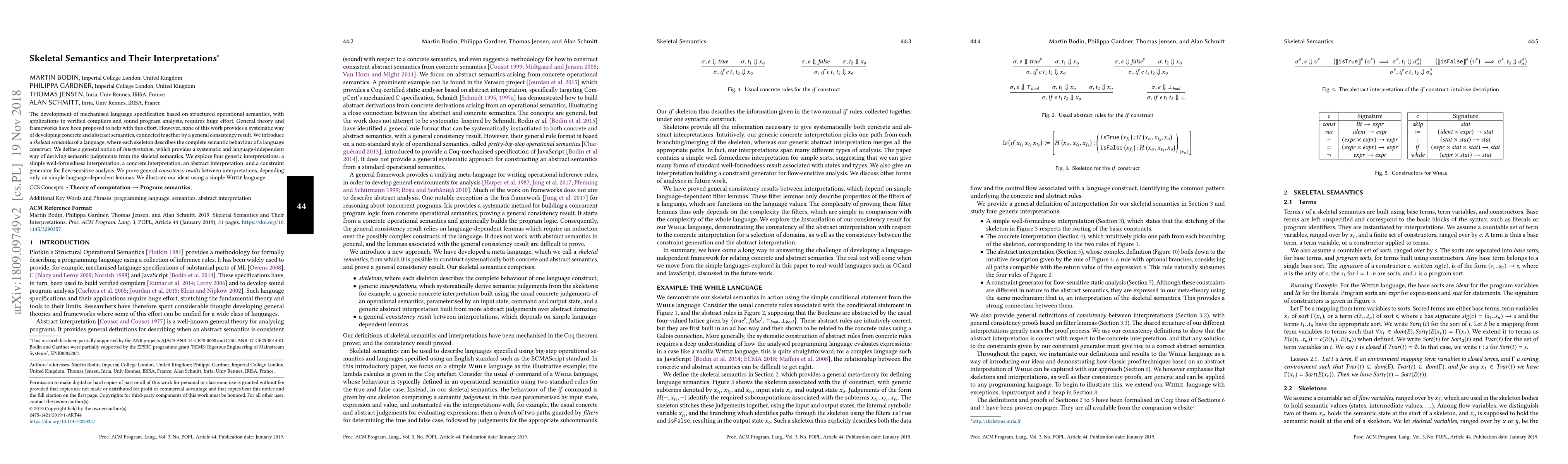 This paper introduces skeletal semantics to systematically develop both concrete and abstract semantics for programming languages, connected by general consistency results. It proposes four interpretations for deriving semantic judgements and proves their consistency, illustrated with a simple While language.
