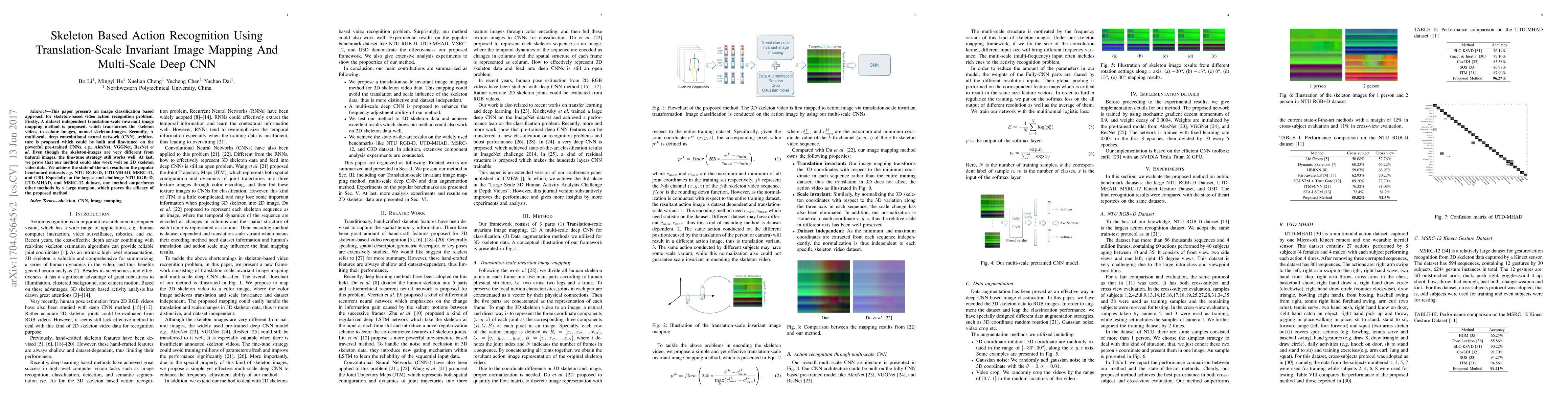 This paper proposes a translation-scale invariant image mapping method to transform skeleton videos into skeleton-images, followed by a multi-scale deep CNN for action recognition. The approach achieves state-of-the-art results on several benchmark datasets, demonstrating its effectiveness.