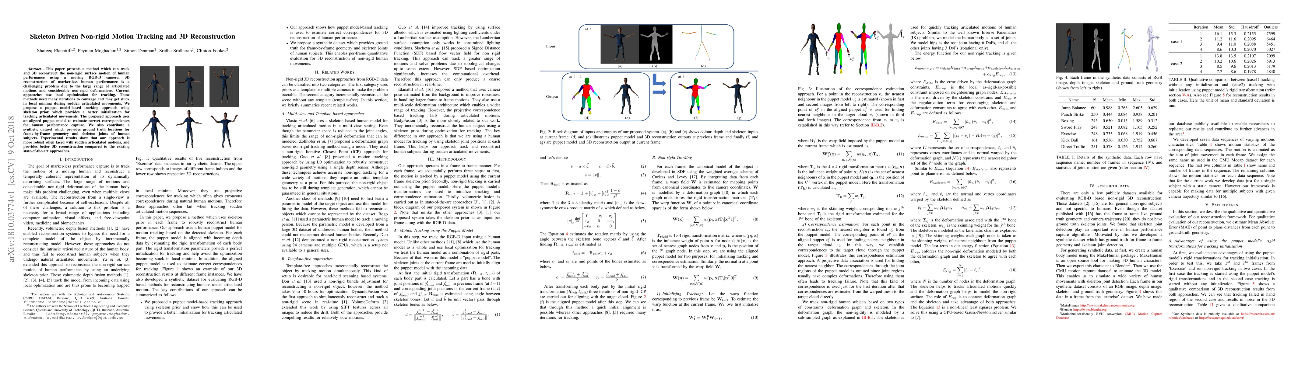 This paper presents a skeleton-driven method for tracking and 3D reconstructing non-rigid human motion using an RGB-D camera, leveraging a puppet model for better initialization and correspondence estimation. The proposed approach demonstrates improved robustness and accuracy over existing methods, especially during sudden articulated movements.