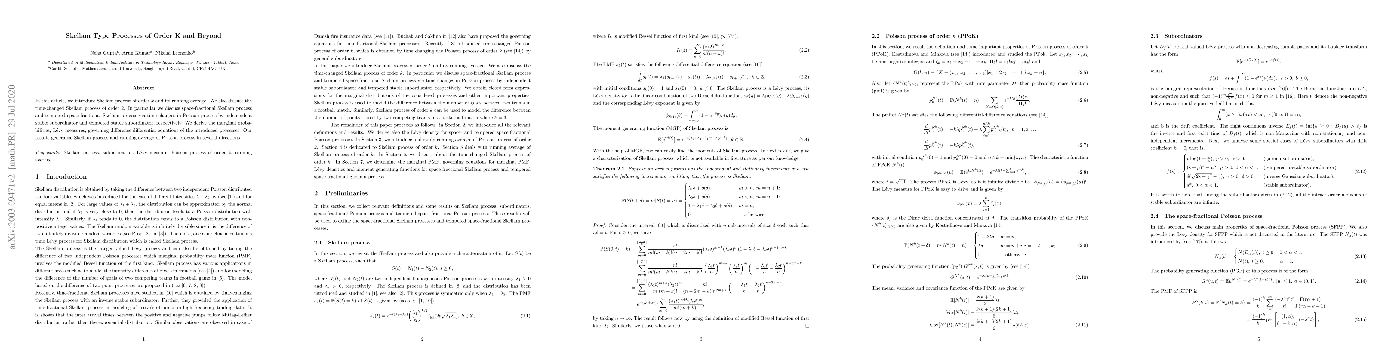 This paper introduces a Skellam process of order k, exploring its running average and time-changed versions, including space-fractional and tempered space-fractional forms. It derives marginal probabilities, Levy measures, and governing difference-differential equations, generalizing traditional Skellam and Poisson processes.