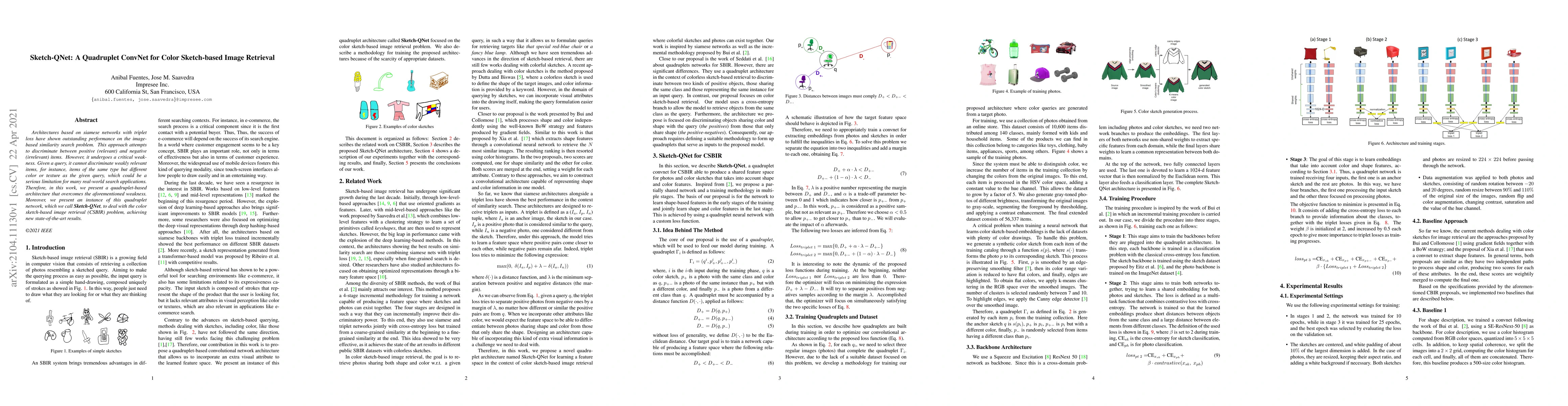 This paper proposes Sketch-QNet, a quadruplet ConvNet that overcomes the weakness of siamese networks in image retrieval, achieving state-of-the-art results in color sketch-based image retrieval.