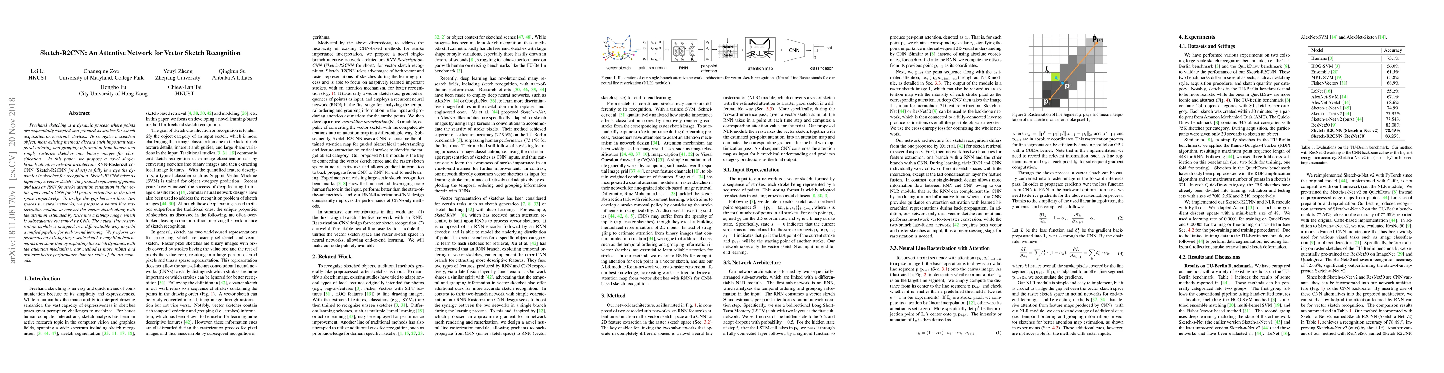 Sketch-R2CNN is an attentive network architecture that leverages temporal dynamics in vector sketches for improved recognition. It combines an RNN for stroke attention and a CNN for feature extraction, with a differentiable rasterization module to bridge vector and bitmap representations, achieving superior performance on sketch recognition benchmarks.