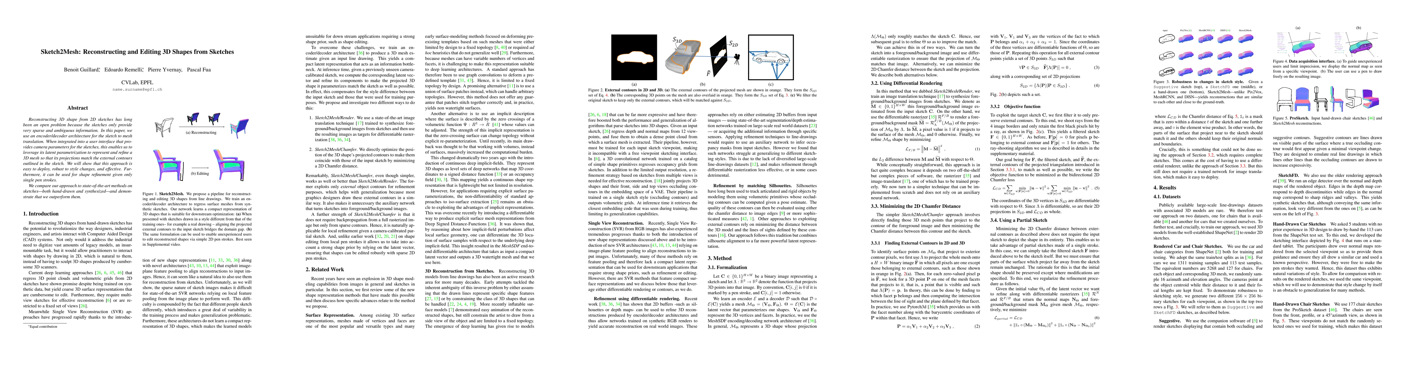 Reconstructing 3D shape from 2D sketches has long been an open problem because the sketches only provide very sparse and ambiguous information. In this paper, we use an encoder/decoder architecture for the sketch to mesh translation. When integrated into a user interface that provides camera parameters for the sketches, this enables us to leverage its latent parametrization to represent and refine a 3D mesh so that its projections match the external contours outlined in the sketch. We will show that this approach is easy to deploy, robust to style changes, and effective. Furthermore, it can be used for shape refinement given only single pen strokes. We compare our approach to state-of-the-art methods on sketches -- both hand-drawn and synthesized -- and demonstrate that we outperform them.