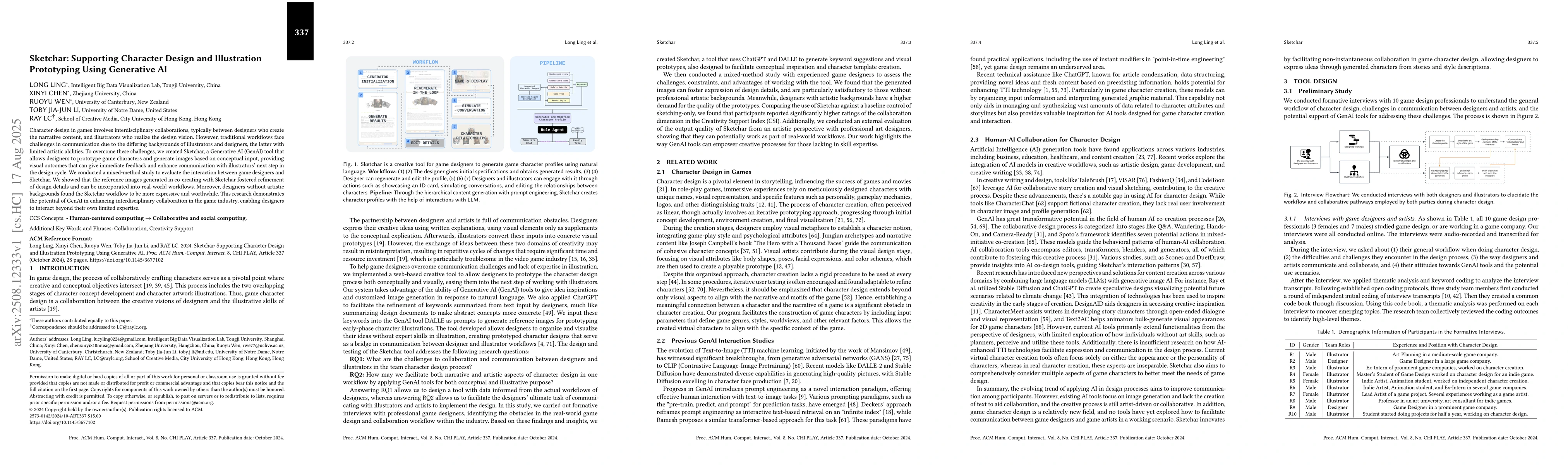 Character design in games involves interdisciplinary collaborations, typically between designers who create the narrative content, and illustrators who realize the design vision. However, traditional workflows face challenges in communication due to the differing backgrounds of illustrators and designers, the latter with limited artistic abilities. To overcome these challenges, we created Sketchar, a Generative AI (GenAI) tool that allows designers to prototype game characters and generate images based on conceptual input, providing visual outcomes that can give immediate feedback and enhance communication with illustrators' next step in the design cycle. We conducted a mixed-method study to evaluate the interaction between game designers and Sketchar. We showed that the reference images generated in co-creating with Sketchar fostered refinement of design details and can be incorporated into real-world workflows. Moreover, designers without artistic backgrounds found the Sketchar workflow to be more expressive and worthwhile. This research demonstrates the potential of GenAI in enhancing interdisciplinary collaboration in the game industry, enabling designers to interact beyond their own limited expertise.
