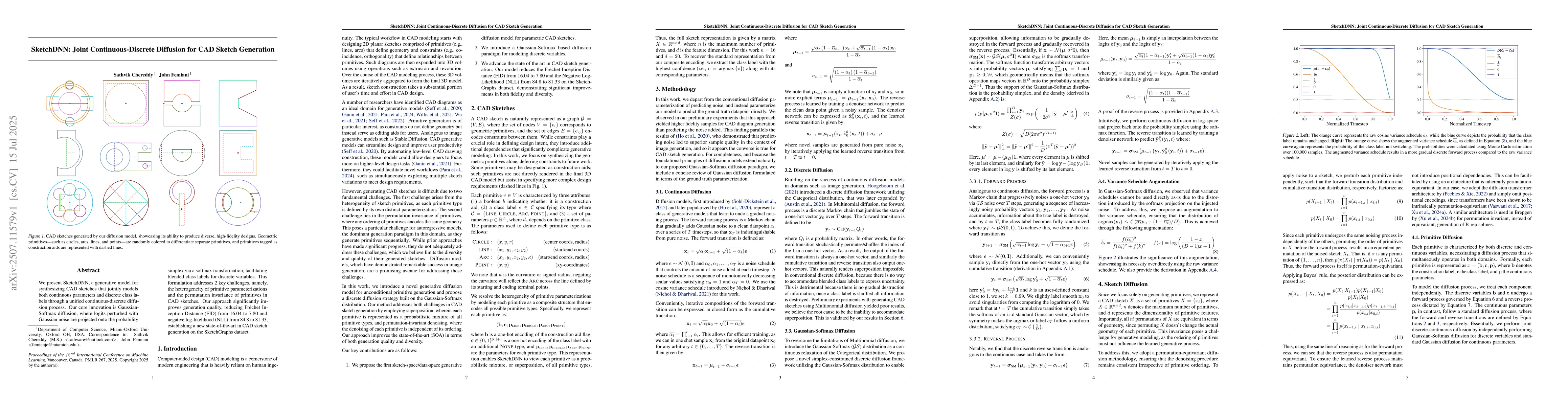 We present SketchDNN, a generative model for synthesizing CAD sketches that jointly models both continuous parameters and discrete class labels through a unified continuous-discrete diffusion process. Our core innovation is Gaussian-Softmax diffusion, where logits perturbed with Gaussian noise are projected onto the probability simplex via a softmax transformation, facilitating blended class labels for discrete variables. This formulation addresses 2 key challenges, namely, the heterogeneity of primitive parameterizations and the permutation invariance of primitives in CAD sketches. Our approach significantly improves generation quality, reducing Fr\'echet Inception Distance (FID) from 16.04 to 7.80 and negative log-likelihood (NLL) from 84.8 to 81.33, establishing a new state-of-the-art in CAD sketch generation on the SketchGraphs dataset.