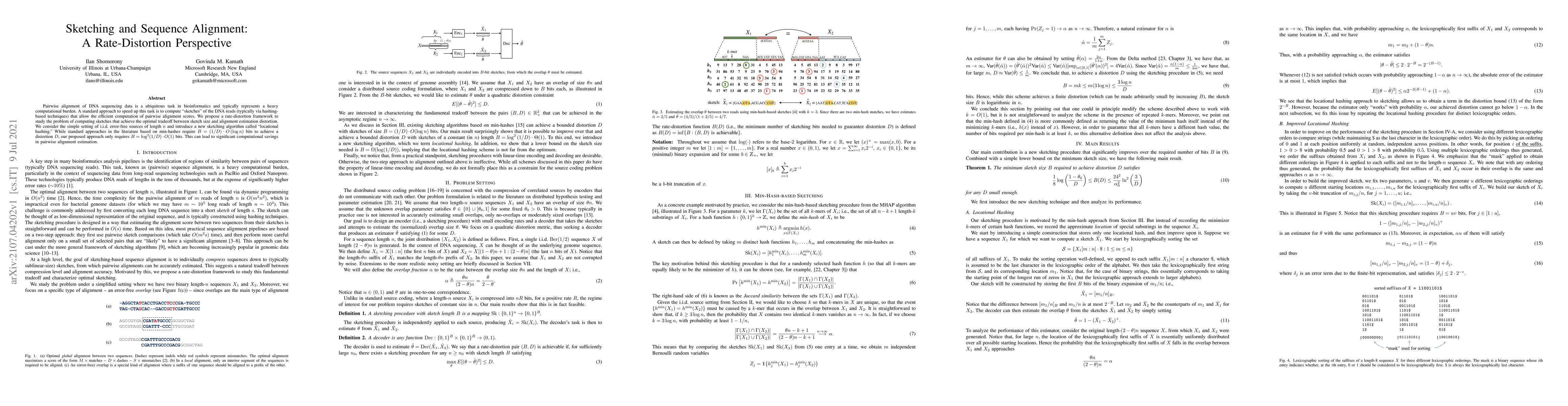 Researchers propose a rate-distortion framework to optimize sketching algorithms for DNA sequencing data alignment, achieving significant computational savings over existing methods.