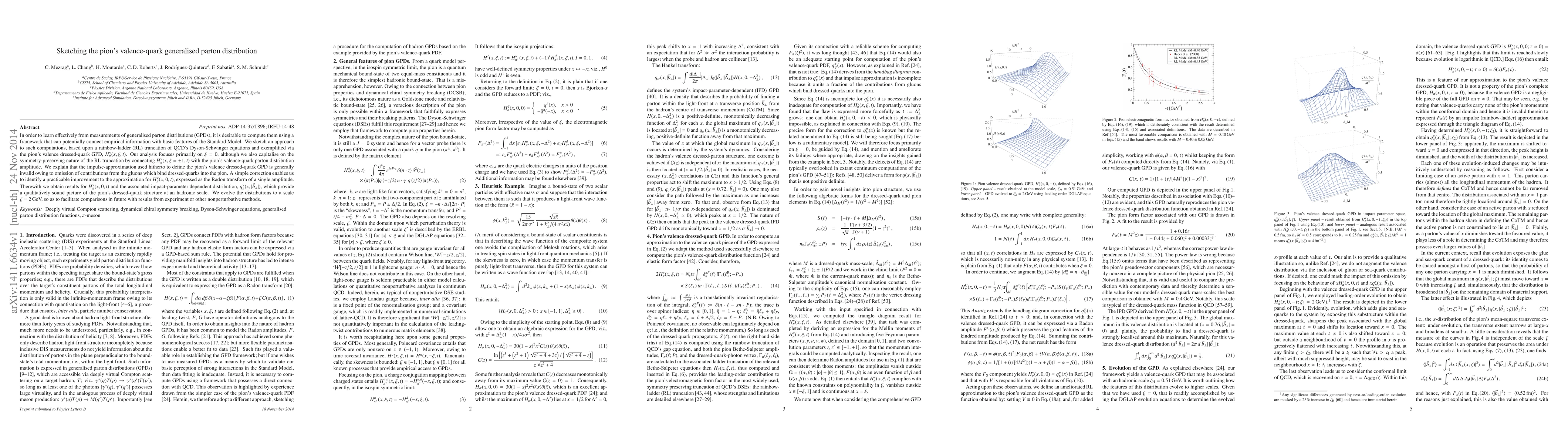 In order to learn effectively from measurements of generalised parton distributions (GPDs), it is desirable to compute them using a framework that can potentially connect empirical information with basic features of the Standard Model. We sketch an approach to such computations, based upon a rainbow-ladder (RL) truncation of QCD's Dyson-Schwinger equations and exemplified via the pion's valence dressed-quark GPD, $H_\pi^{\rm v}(x,\xi,t)$. Our analysis focuses primarily on $\xi=0$, although we also capitalise on the symmetry-preserving nature of the RL truncation by connecting $H_\pi^{\rm v}(x,\xi=\pm 1,t)$ with the pion's valence-quark parton distribution amplitude. We explain that the impulse-approximation used hitherto to define the pion's valence dressed-quark GPD is generally invalid owing to omission of contributions from the gluons which bind dressed-quarks into the pion. A simple correction enables us to identify a practicable improvement to the approximation for $H_\pi^{\rm v}(x,0,t)$, expressed as the Radon transform of a single amplitude. Therewith we obtain results for $H_\pi^{\rm v}(x,0,t)$ and the associated impact-parameter dependent distribution, $q_\pi^{\rm v}(x,|\vec{b}_\perp|)$, which provide a qualitatively sound picture of the pion's dressed-quark structure at an hadronic scale. We evolve the distributions to a scale $\zeta=2\,$GeV, so as to facilitate comparisons in future with results from experiment or other nonperturbative methods.