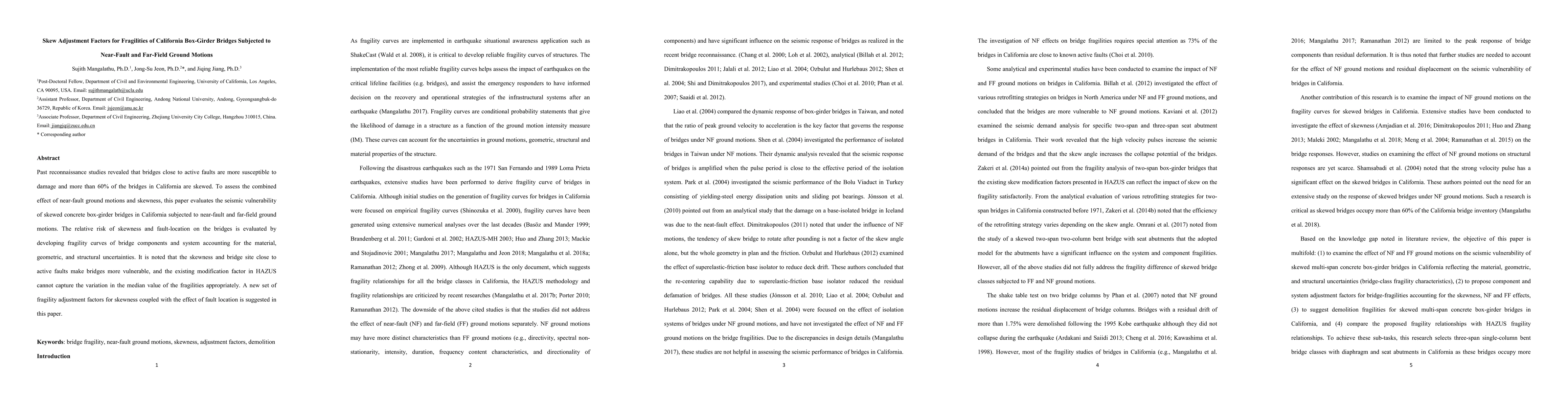 This paper evaluates the seismic vulnerability of skewed concrete box-girder bridges in California under near-fault and far-field ground motions, finding that skewness and proximity to active faults increase vulnerability. It proposes new adjustment factors for fragility curves to better account for these factors.