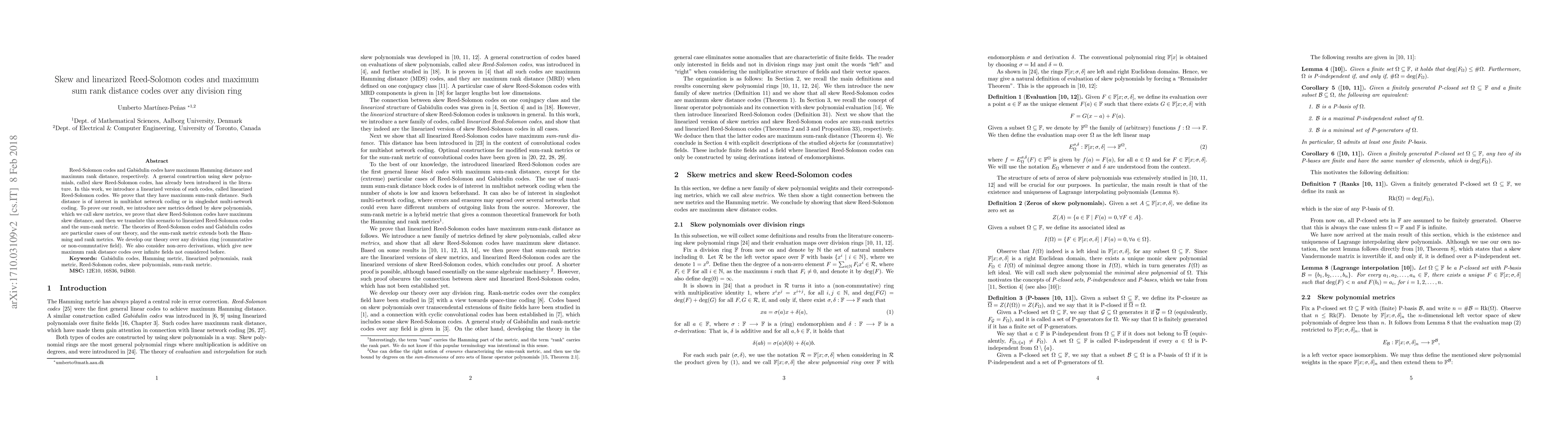 This paper introduces linearized Reed-Solomon codes constructed using skew polynomials, proving they achieve maximum sum-rank distance over any division ring. The authors develop new skew metrics and extend the theory to include non-zero derivations, yielding new maximum rank distance codes over infinite fields.