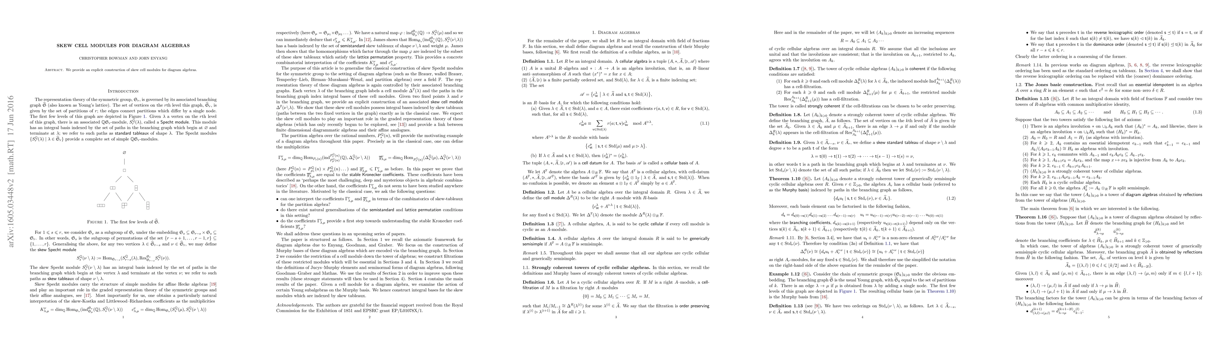 Summary: This paper presents a detailed construction of skew cell modules for diagram algebras, offering a clear framework for understanding their structure and properties. The methodology provides valuable insights into the algebraic framework of diagram algebras.