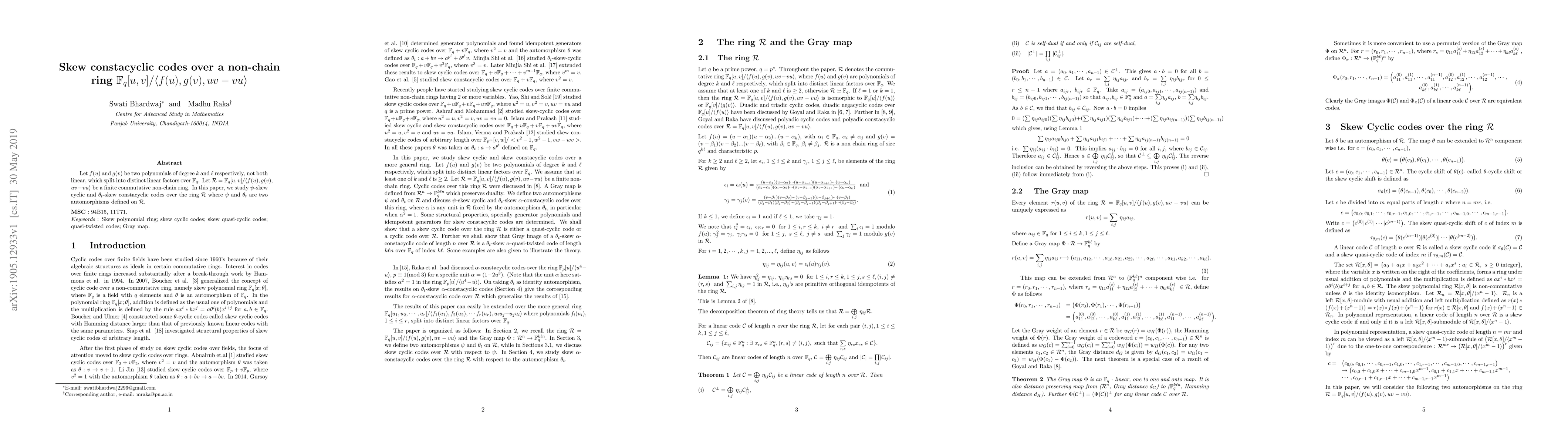Let $f(u)$ and $g(v)$ be two polynomials of degree $k$ and $\ell$ respectively, not both linear, which split into distinct linear factors over $\mathbb{F}_{q}$. Let $\mathcal{R}=\mathbb{F}_{q}[u,v]/\langle f(u),g(v),\\uv-vu\rangle$ be a finite commutative non-chain ring. In this paper, we study $\psi$-skew cyclic and $\theta_t$-skew constacyclic codes over the ring $\mathcal{R}$ where $\psi$ and $\theta_t$ are two automorphisms defined on $\mathcal{R}$.