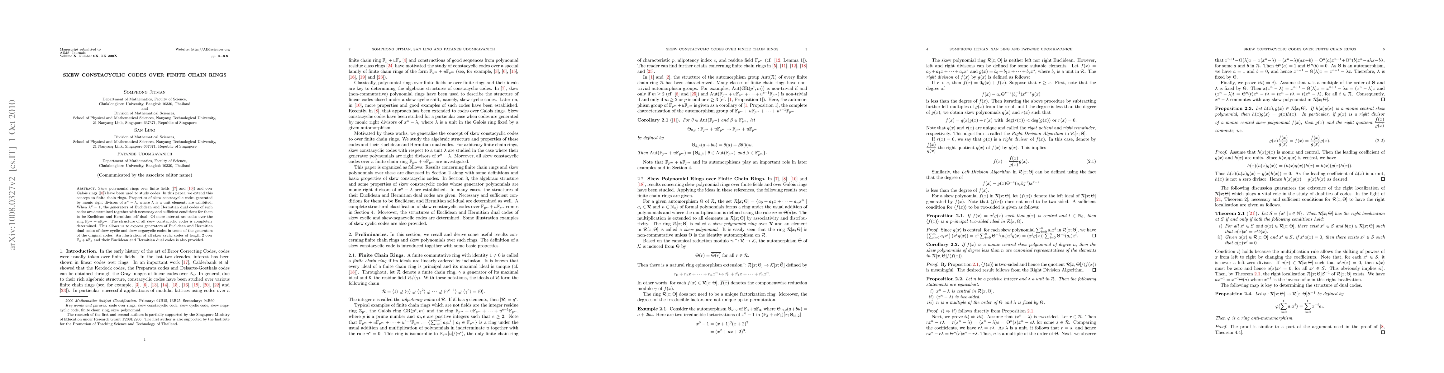Skew polynomial rings over finite fields ([7] and [10]) and over Galois rings ([8]) have been used to study codes. In this paper, we extend this concept to finite chain rings. Properties of skew constacyclic codes generated by monic right divisors of $x^n-\lambda$, where $\lambda$ is a unit element, are exhibited. When $\lambda^2=1$, the generators of Euclidean and Hermitian dual codes of such codes are determined together with necessary and sufficient conditions for them to be Euclidean and Hermitian self-dual. Of more interest are codes over the ring $\mathbb{F}_{p^m}+u\mathbb{F}_{p^m}$. The structure of all skew constacyclic codes is completely determined. This allows us to express generators of Euclidean and Hermitian dual codes of skew cyclic and skew negacyclic codes in terms of the generators of the original codes. An illustration of all skew cyclic codes of length~2 over $\mathbb{F}_{3}+u\mathbb{F}_{3}$ and their Euclidean and Hermitian dual codes is also provided.