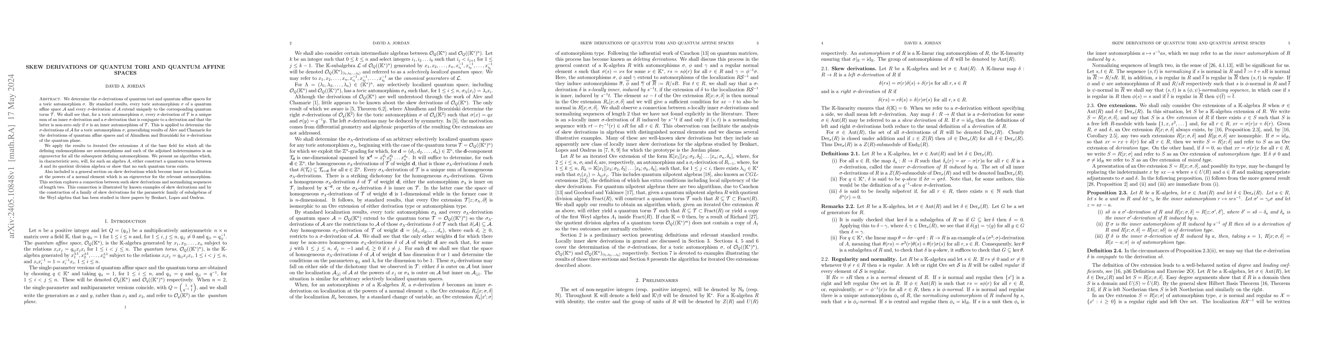 This paper investigates $\sigma$-derivations in quantum tori and quantum affine spaces under toric automorphisms $\sigma$. It demonstrates that every $\sigma$-derivation of a quantum torus $\mathcal{T}$ is a unique sum of an inner $\sigma$-derivation and another type that is non-zero only if $\sigma$ is an inner automorphism. An algorithm is presented for determining the existence of a quantum torus in iterated Ore extensions, and connections between skew derivations and normalizing sequences are explored.