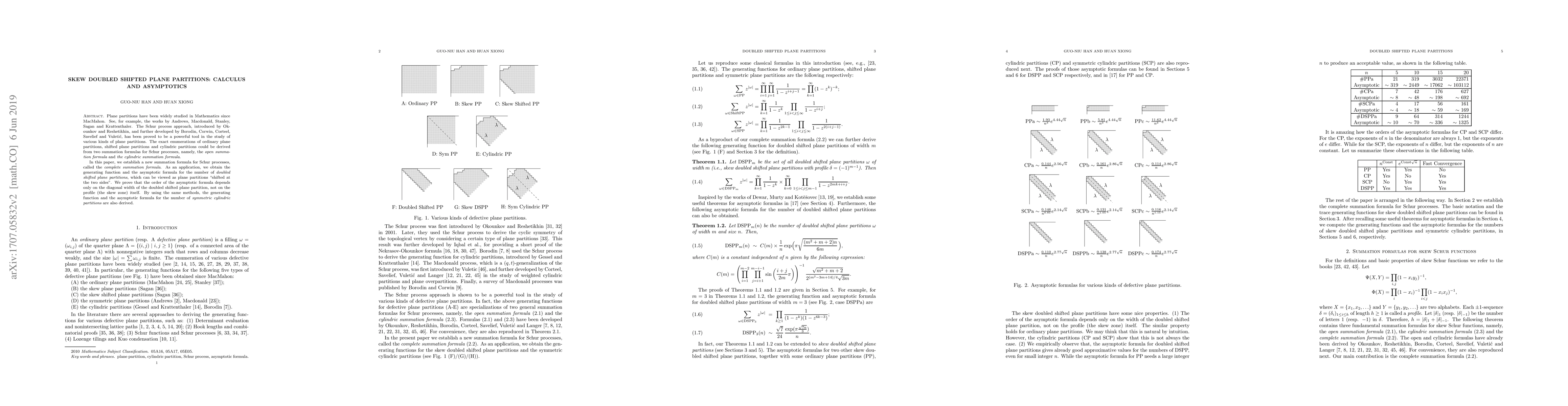 This paper introduces a new summation formula for Schur processes, termed the complete summation formula, to derive generating functions and asymptotic formulas for doubled shifted plane partitions and symmetric cylindric partitions. The asymptotic behavior depends solely on the diagonal width, not on the specific partition shape.