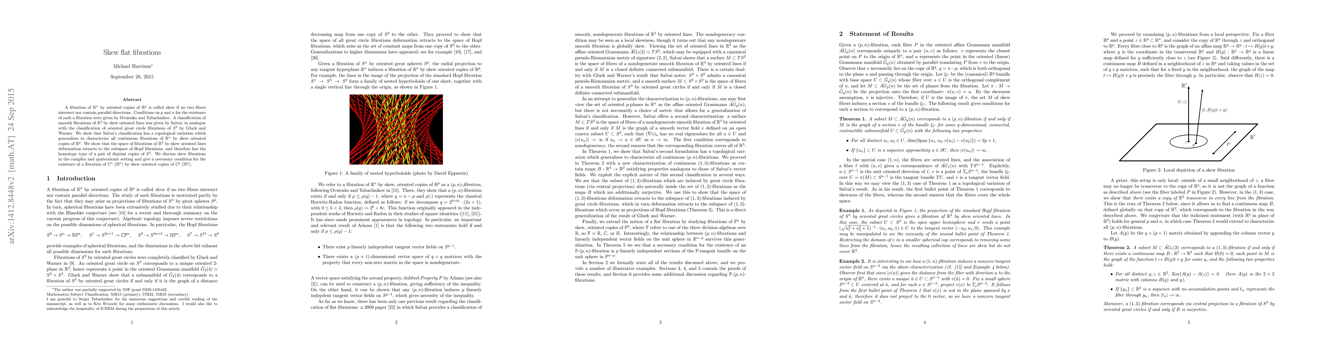 This paper classifies continuous fibrations of ${\mathbb R}^n$ by skew oriented copies of ${\mathbb R}^p$, showing that the space of such fibrations in ${\mathbb R}^3$ deformation retracts to the subspace of Hopf fibrations, thus having the homotopy type of two disjoint $S^2$ spheres. It also discusses the necessary conditions for similar fibrations in complex and quaternionic settings.