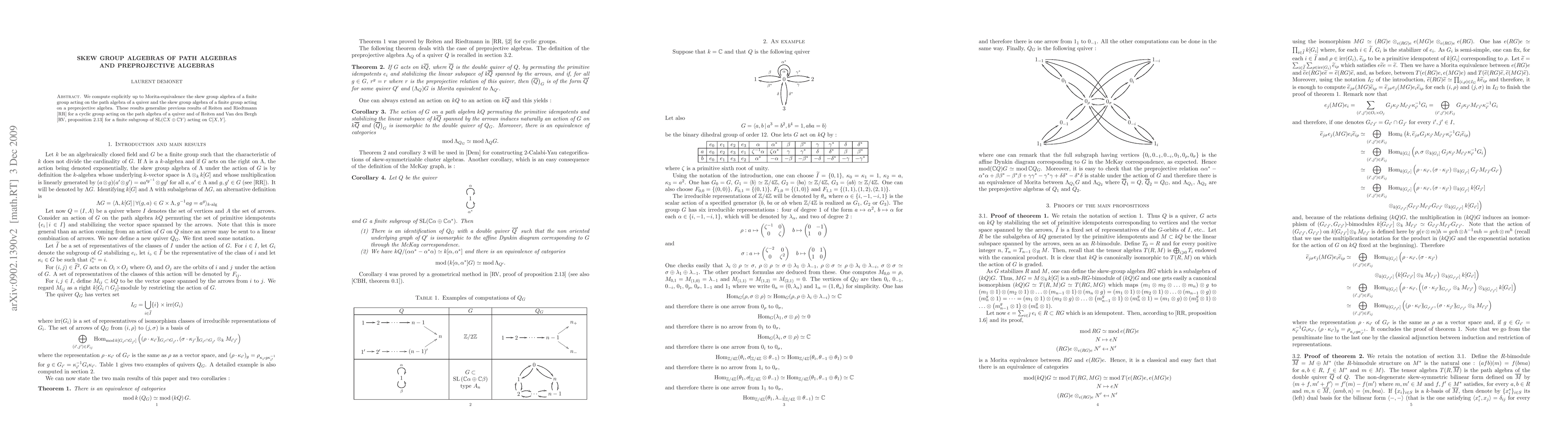 This paper computes the skew group algebras for a finite group acting on both the path algebra of a quiver and a preprojective algebra, generalizing prior results for cyclic groups and finite subgroups of $\SL(\C X \oplus \C Y)$. The findings are presented up to Morita-equivalence.